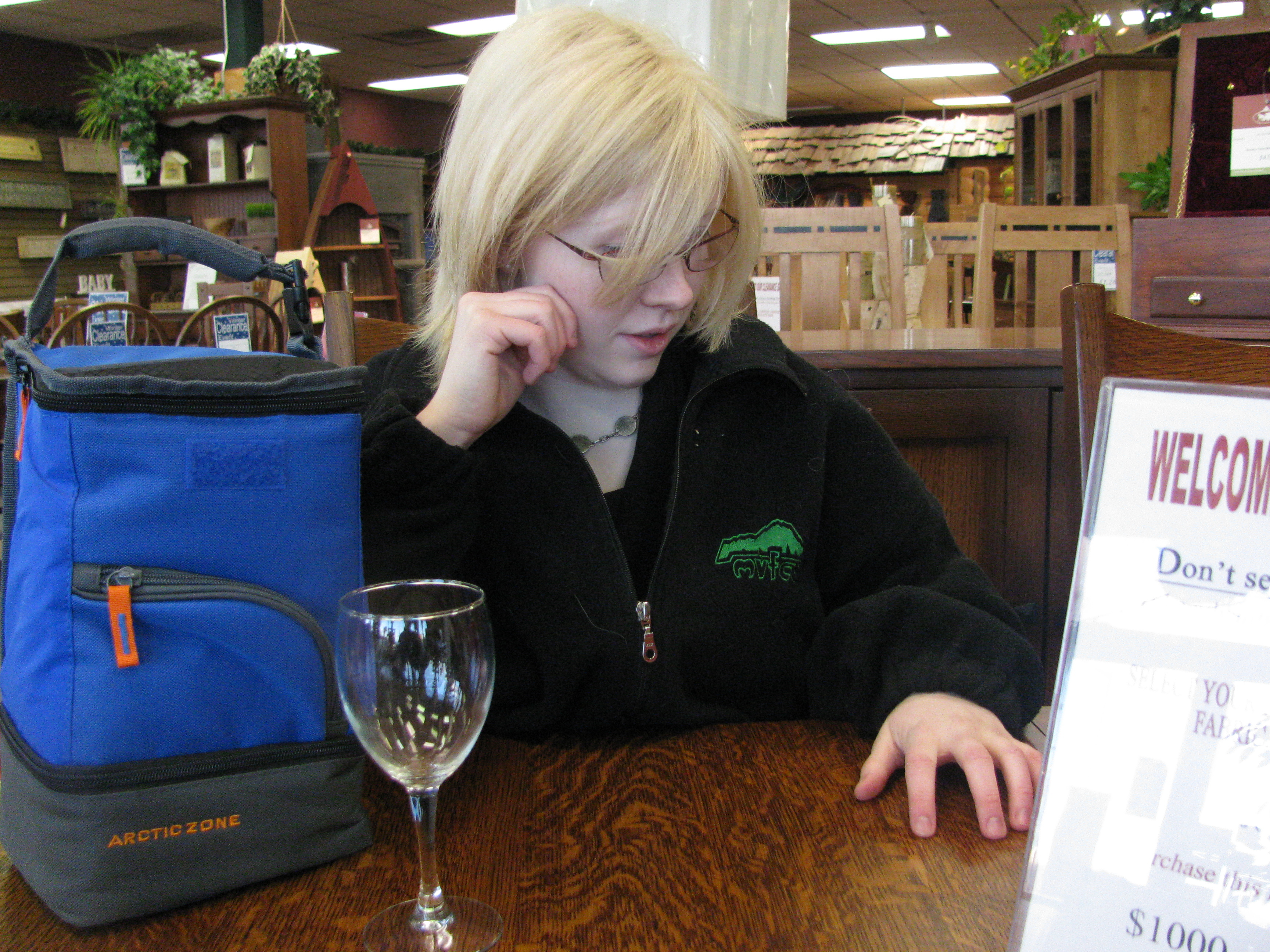 Helen was the nice Sadler's beast that wanted to sell us a table. Our story was that we were looking for a table for our apartment and that we wanted to just sit around for a while to see how we liked them.