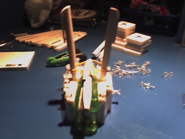This tank fires modified pens to a range of up to 3 GOW's (General Office Width). The Pens are modified to lodge deep into victims, incapacitate and slowly kill. The firing mechanism is powered in a coventional manner, an elastic band, with push pins arranged in a manner as to stretch the band more, supplying more power. The turret is fashoined from surplus staples, and causes the tank to have reasonable aim, but you wont need accuracy with one of these ready to fire.