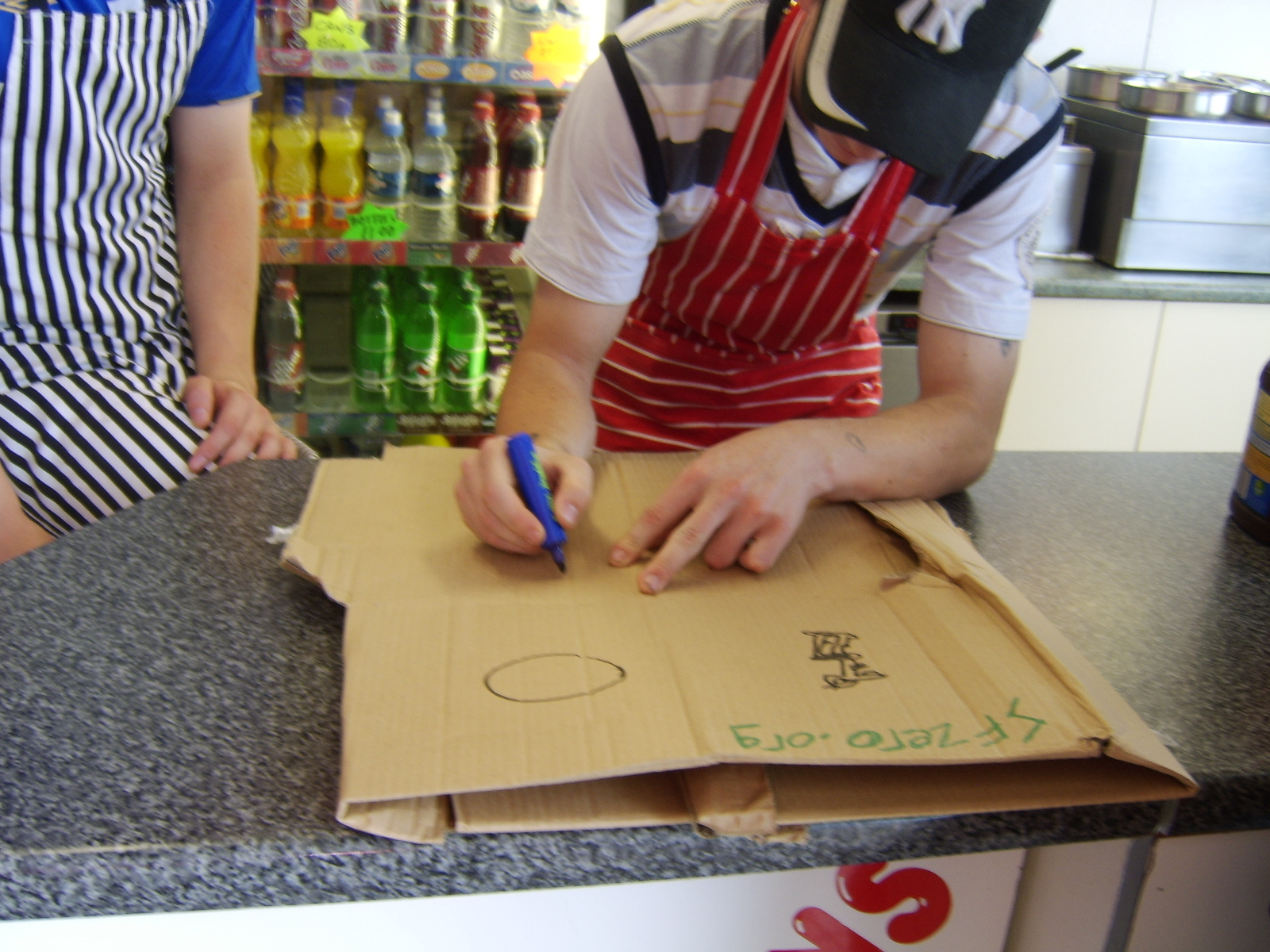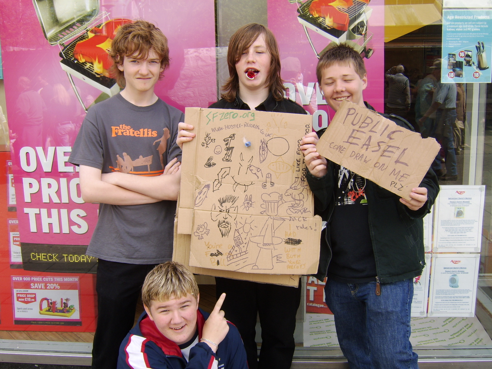 We then headed back into the market square, and stood outside Argos. Daryl went inside to buy new camera batteries, and the rest of us stood outside attempting to get more additions. We got a few, however it seemed Great Yarmouth had run out of people with patience for a group of teens thrusting cardboard in thier faces.