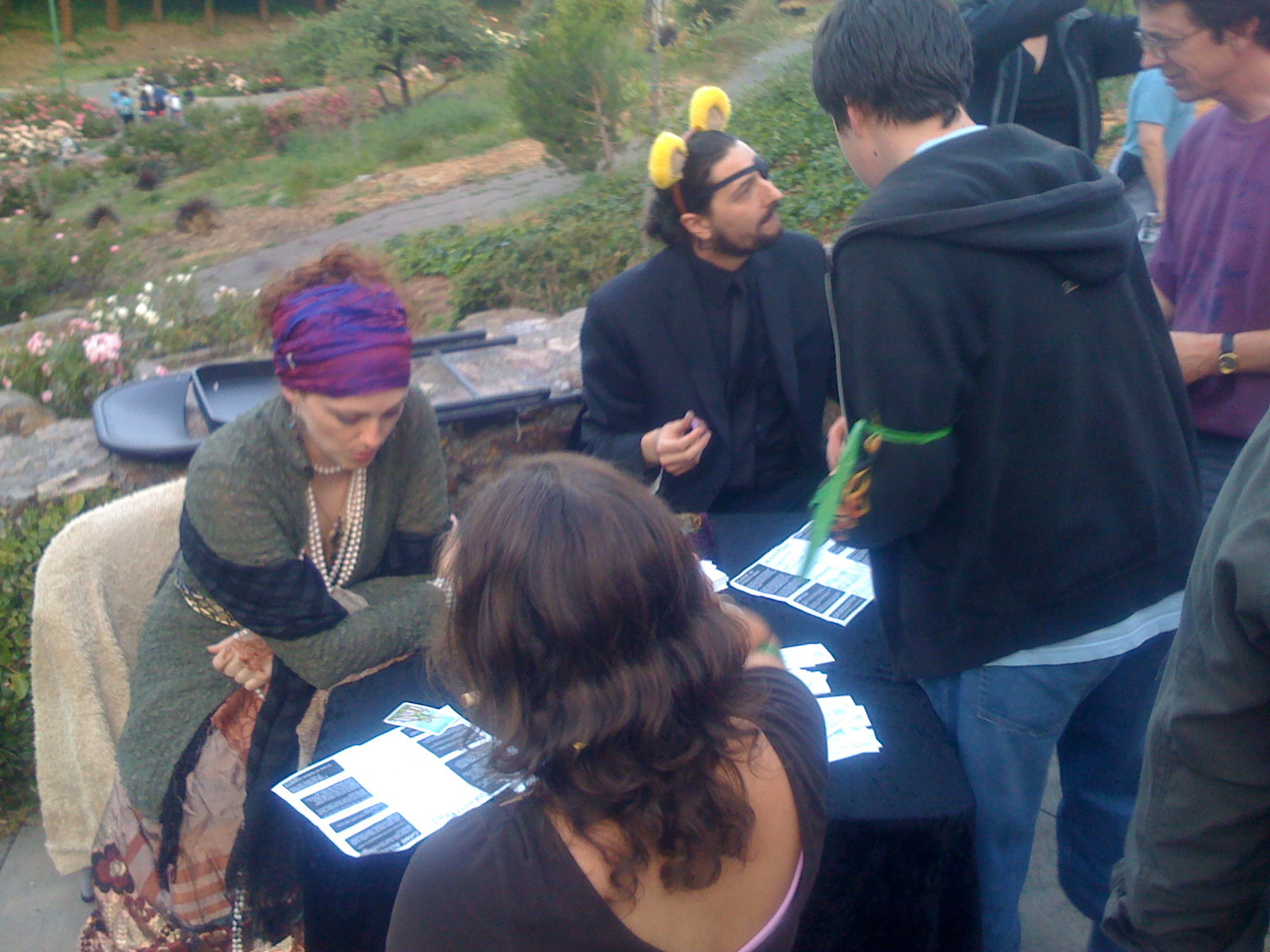 We made our way to the fortuneteller and received our signatures from the magician, then set off. Again, there were only a couple reasonable routes, so we soon ran into a chaser who broke into an immediate sprint. I went around him and continued forward, eventually stopping on a side street with a couple other runners, and called Beek. He was all the way back at the checkpoint. "Want to meet up?" he said. I did, but given that I was going to have to wait for him somewhere, I decided I'd rather do it at a safe spot, so we agreed to meet at the next checkpoint. I set out on my own.