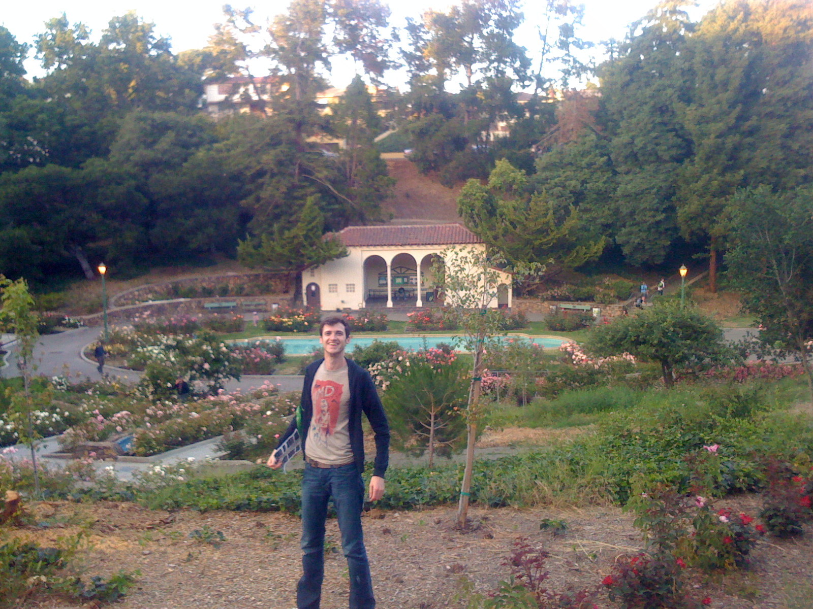 Beek yelled, "Here!" and I looked back to see him disappearing through a crack in the bushes. I rushed back and saw a steep dirt hill leading downwards into the park, Beek already halfway down. I shrugged and followed, almost losing my footing a number of times. The chaser arrived at the top, took one look, and yelled, "Whatever!" I yelled back, "See you later!" (but inside I thought, hopefully not).
