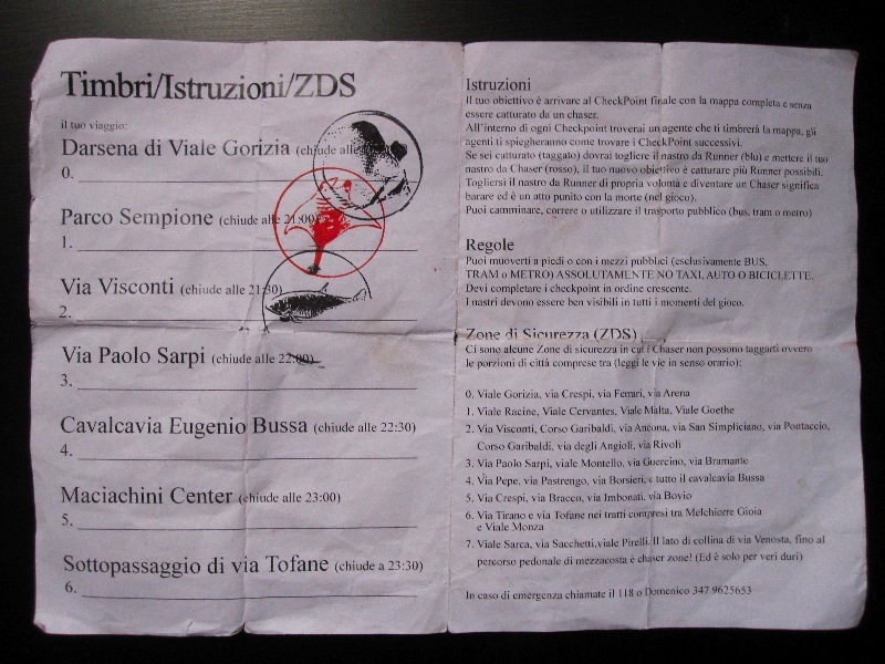 1.xx: I reach the block of the ending and I decide I am too tired to chase any more. I walk up the hill in Bicocca and enjoy some beers. Later I will find out that the first chaser took 16 scalps, while I took just 14. Ah, bad luck, but a second place is sweet since the third took just 6 scalps.