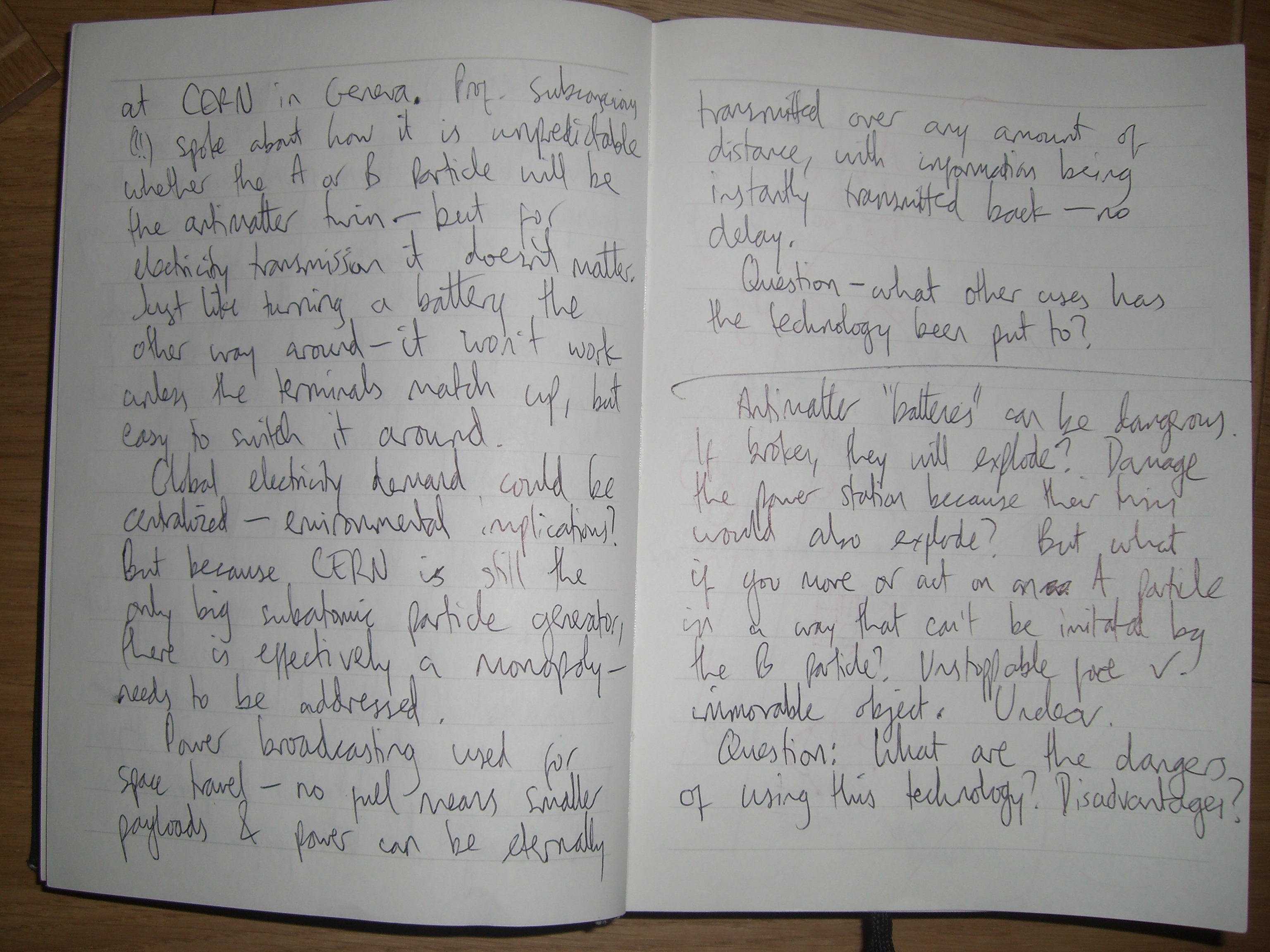 My subsequent dreams got far too involved in the mechanics of these super-particles, so I tried to pull it back and give some more thoughts to the societal implications of being able to broadcast electrical power. After all, it sounds like a potentially feasible technology even if it might have nothing to do with quantum entanglement.