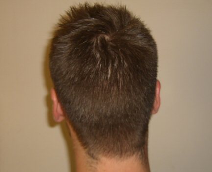 This is what most of the other eight attempts looked like. It is surprisingly difficult to take a picture of the back of your own head. Thank goodness for digital cameras.