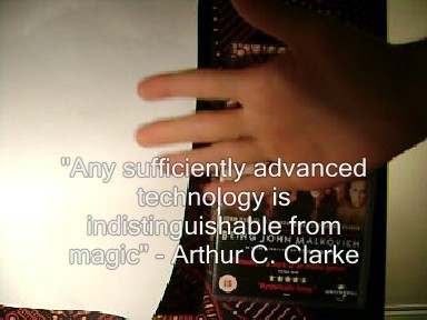 No ruler or pole sneaking under your arm huh? That is surely what I had suspected. If you could some how demonstrate to me that this is true, this would be vote worthy. If I were going to do this task and have it look convincing with no obvious assistence, I would drill a hole through the table under the book (or DVD, can't tell), attach a handle to the book and have someone push it up under my hand. It doesn't look to me like that is what you did, so if your ruler denial is truthful, then you got me stumped too