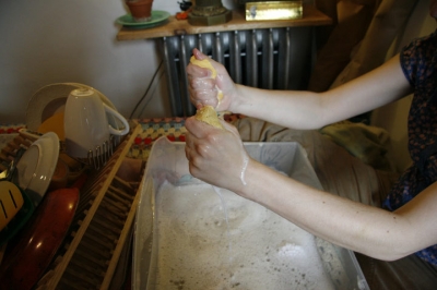 the dishes...childhood chore, childhood bore. representative motion of the most suburban of tasks, the art of washing dishes comes to us as if natural, as if wholly synchronized with our biological rhythm. some of us are blessed with a two-basin sink, others doomed to suffer the inconvenience of utilizing one basin for washing and the same for rinsing.
