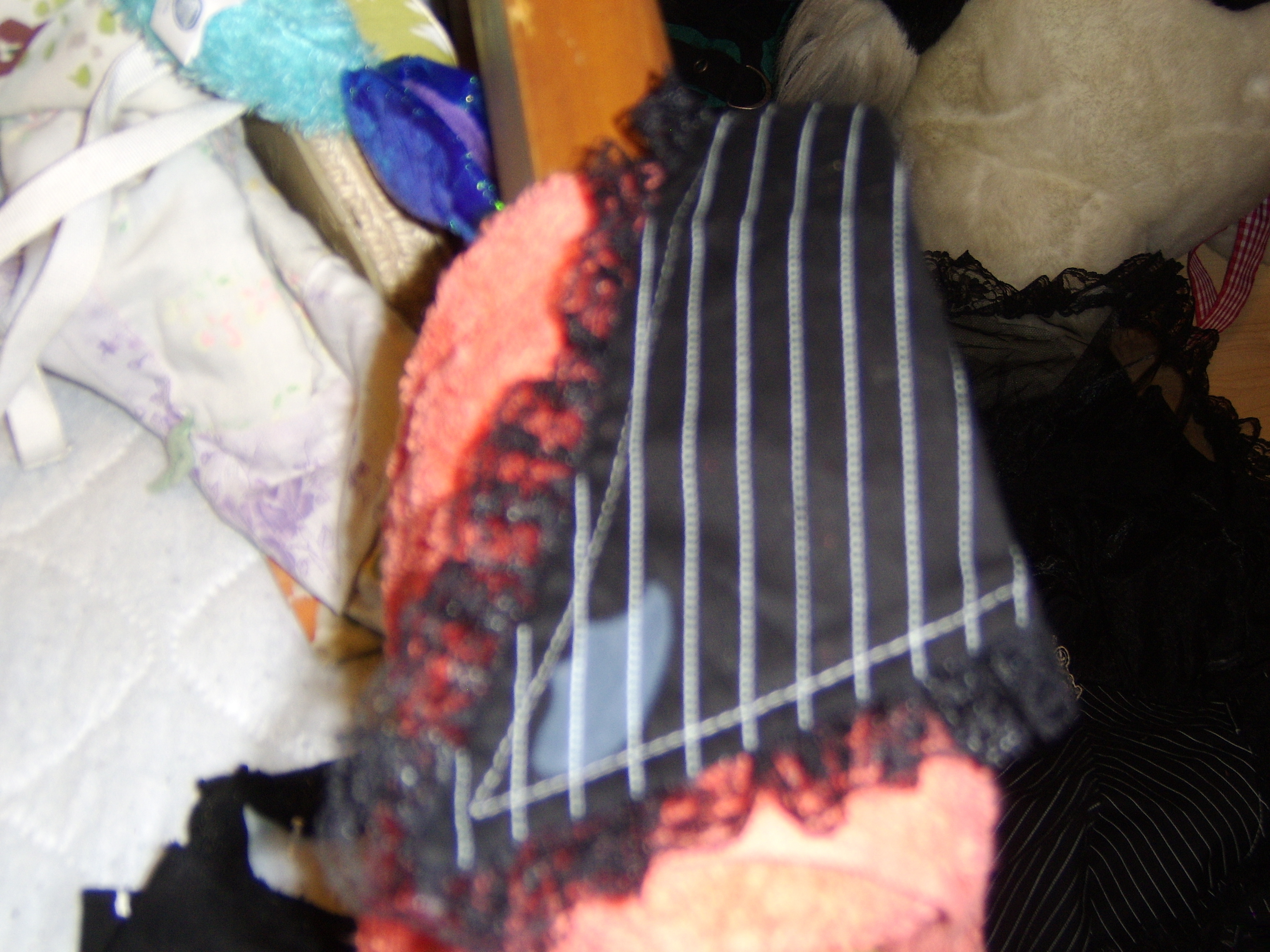 this is a collar thing that goes with an amazing lolita dress I own. Its so pretty. I loves it. So i drew little devil wings on it.