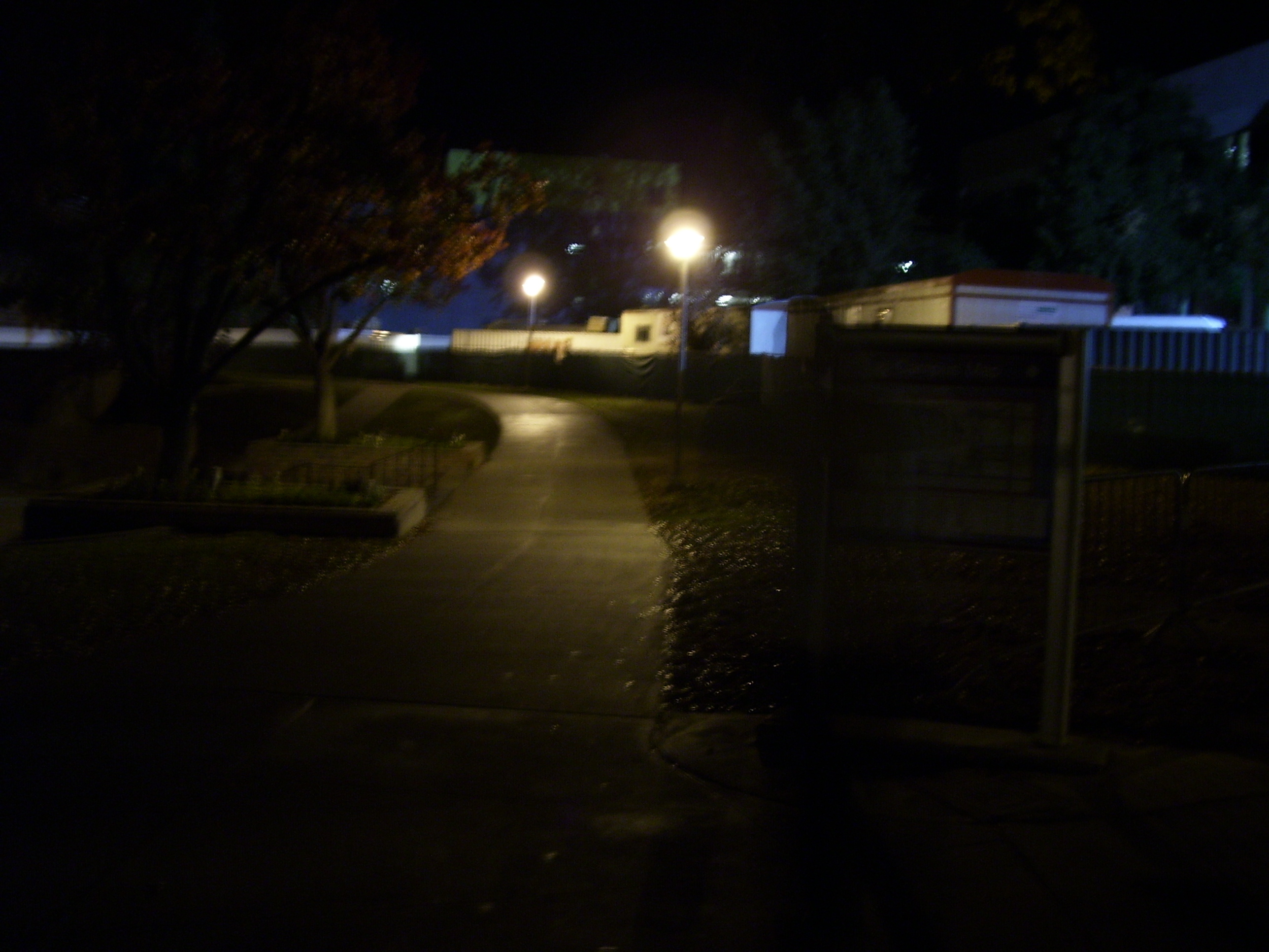 I decided that my wandering should stick to the "safe lighting" pathways in my immediate neighborhood (campus), simply in the interest of safety. This also means I should find some interesting lighting situations.
