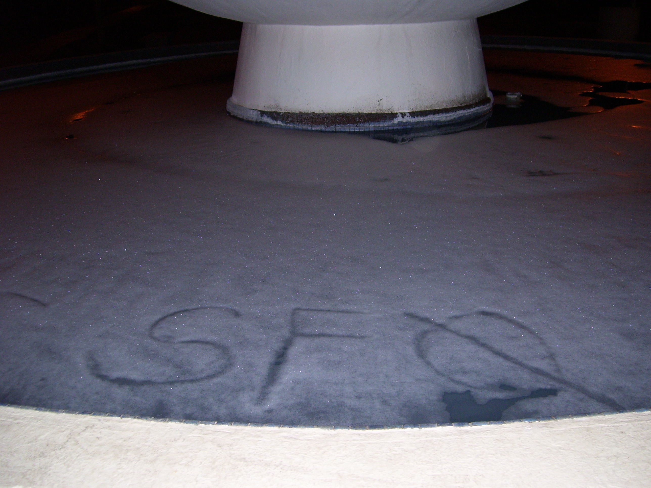 We began our wanderings from the hall at about 12:15, because it takes that long for everyone to get warm clothes on and get ready. We ambled our way in a lopsided loop through the Peace Garden, to the Free Speech Area, and to the fountain. I saw some great sights, Darylene climbed a pole, Sam sulked on a bench for a photo op, and we wrote words in the foam in the fountain.