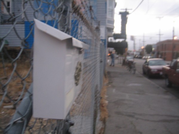 I secured the box as well as I could. I attached it to the fence with hose clamps which seem pretty damn solid. You'd have to be on the other side of the fence if you wanted to take it down without destroying it. I've included some pictures and will check up often to see if mail arrives. (I will also send something just to see if the post office will deliver there.)