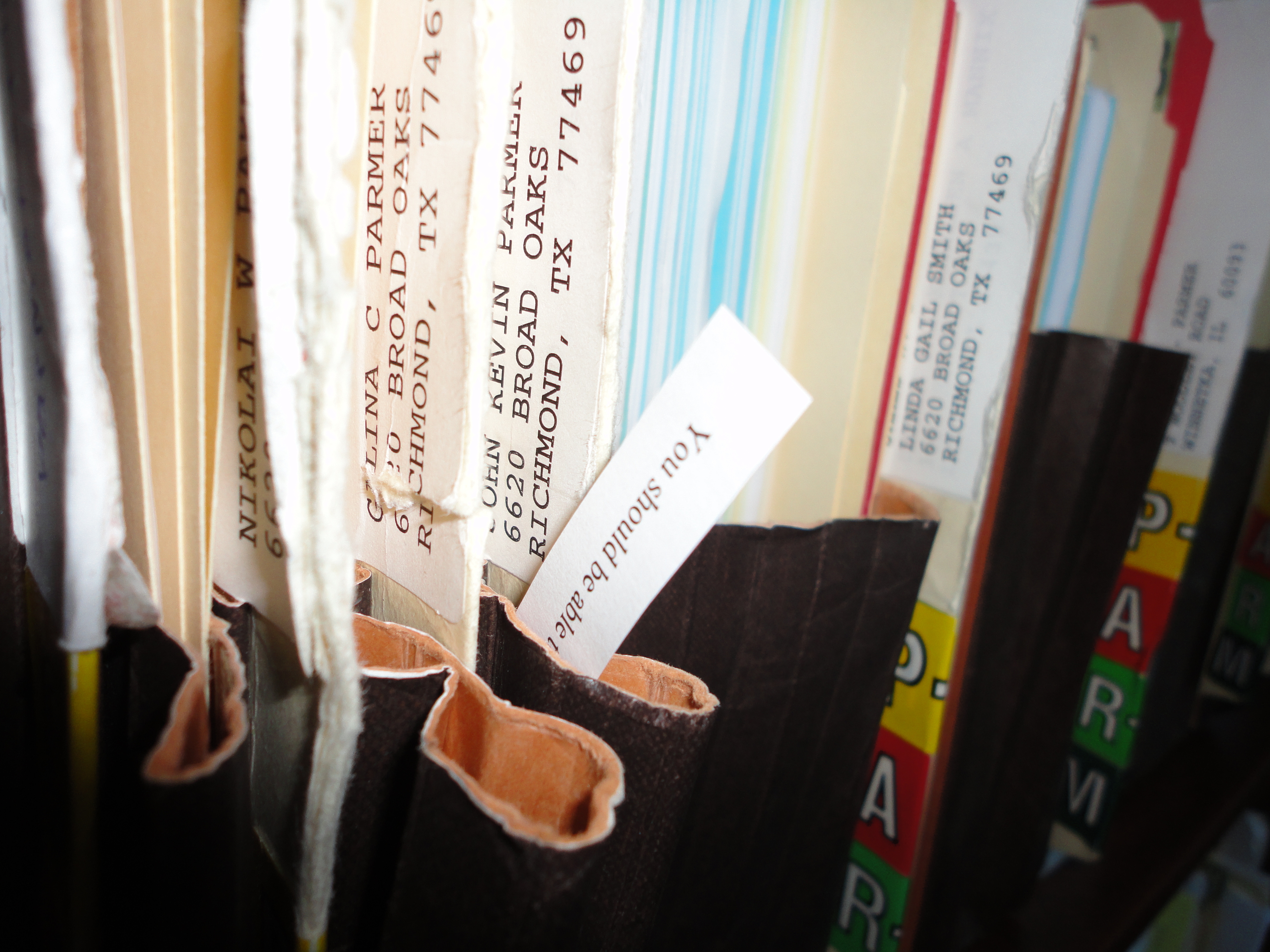 I was somewhat inspired by my completion of the "Merci" task, where I posted a thank you sign in the file room at my office. I figured that this would be the perfect spot for me to initiate my "Fortune Not Cookie" efforts.