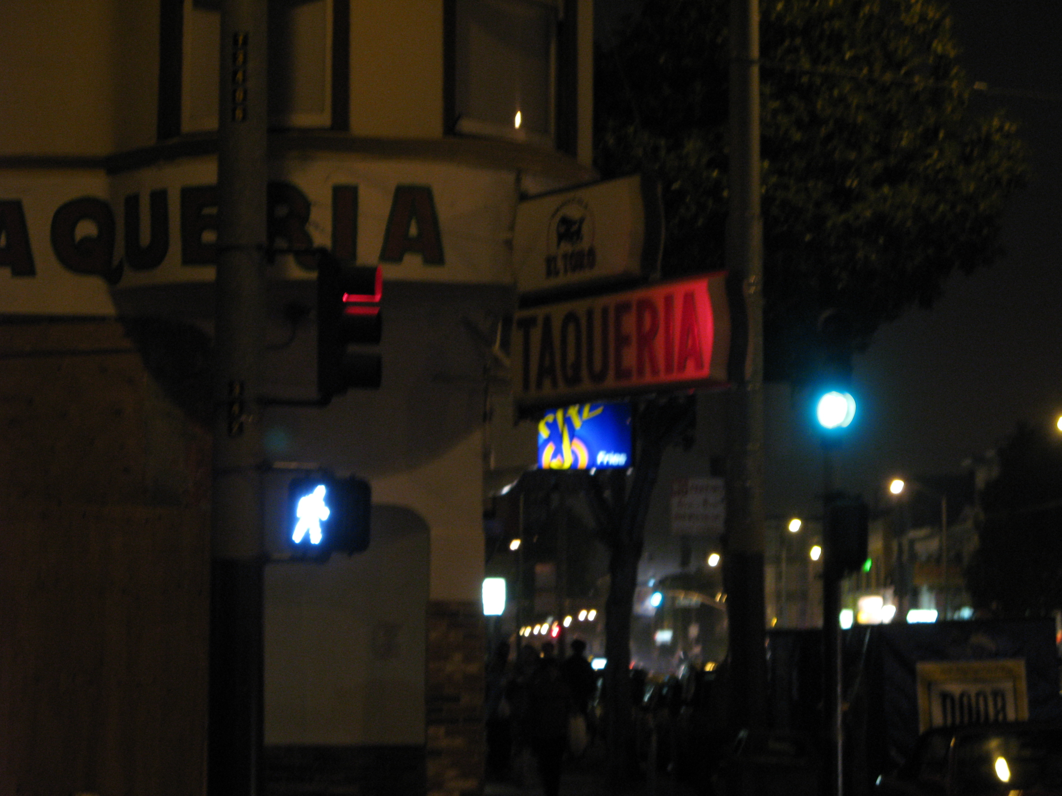 A taqueria! Our favorite thing about the Mission, especially in the deepest, darkest night!