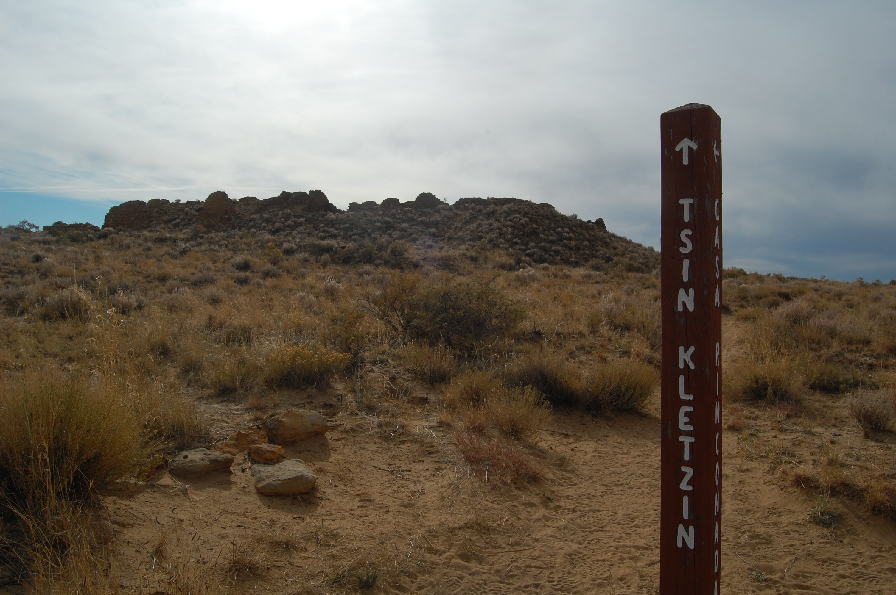 Tsin Kletzin, or "charcoal place" is a Great House located at the highest point in Chaco Culture National Historical Park. Perched on top of the South Mesa, it sits 450 feet above the canyon floor at its base, for a total elevation of 6600 feet above sea level.