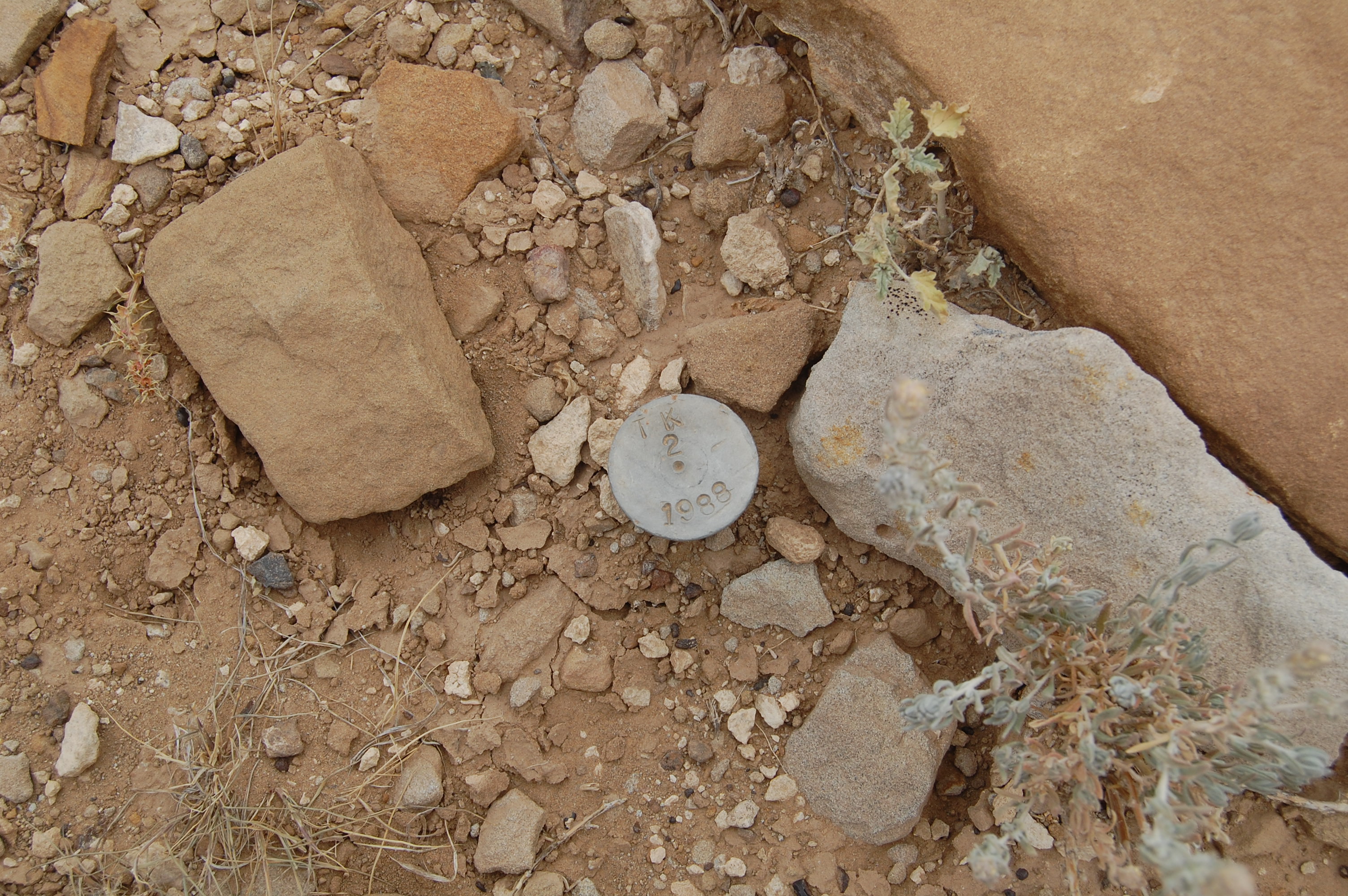 Tsin Kletzin has never been excavated, but it has been mapped and surveyed. Here is the main datum point from a survey apparantly conducted in 1988. This was the central "zero" point from which all measurements were based.