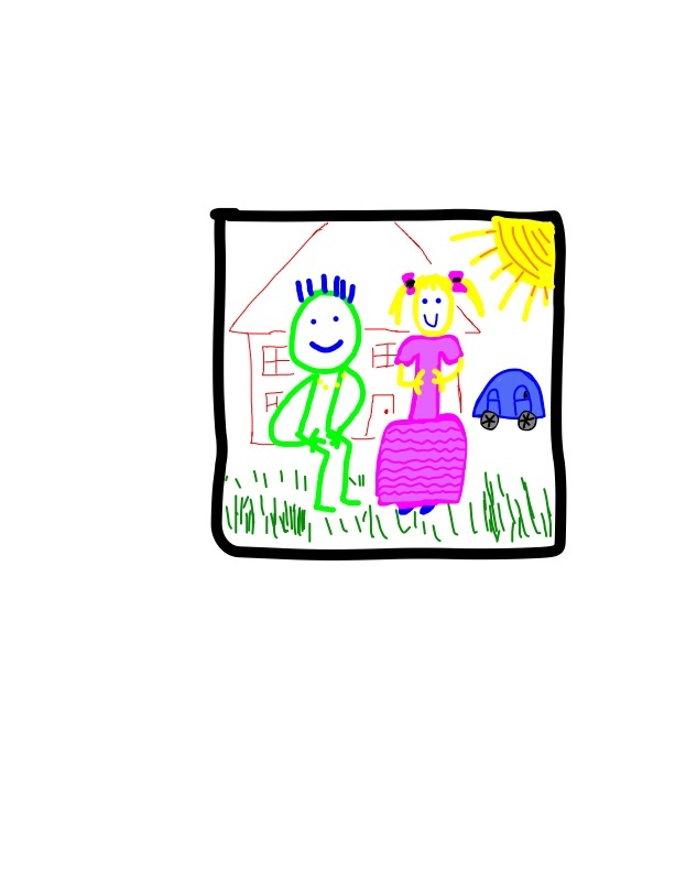 I took a bold, creative step. My husband was the only other person I knew on SF0. However, my I found my New Media Production instructor this afternoon. I decided to draw him (the Professor) and his daughter (the Princess). Thank goodness I teach high school English, but I think it turned out cute