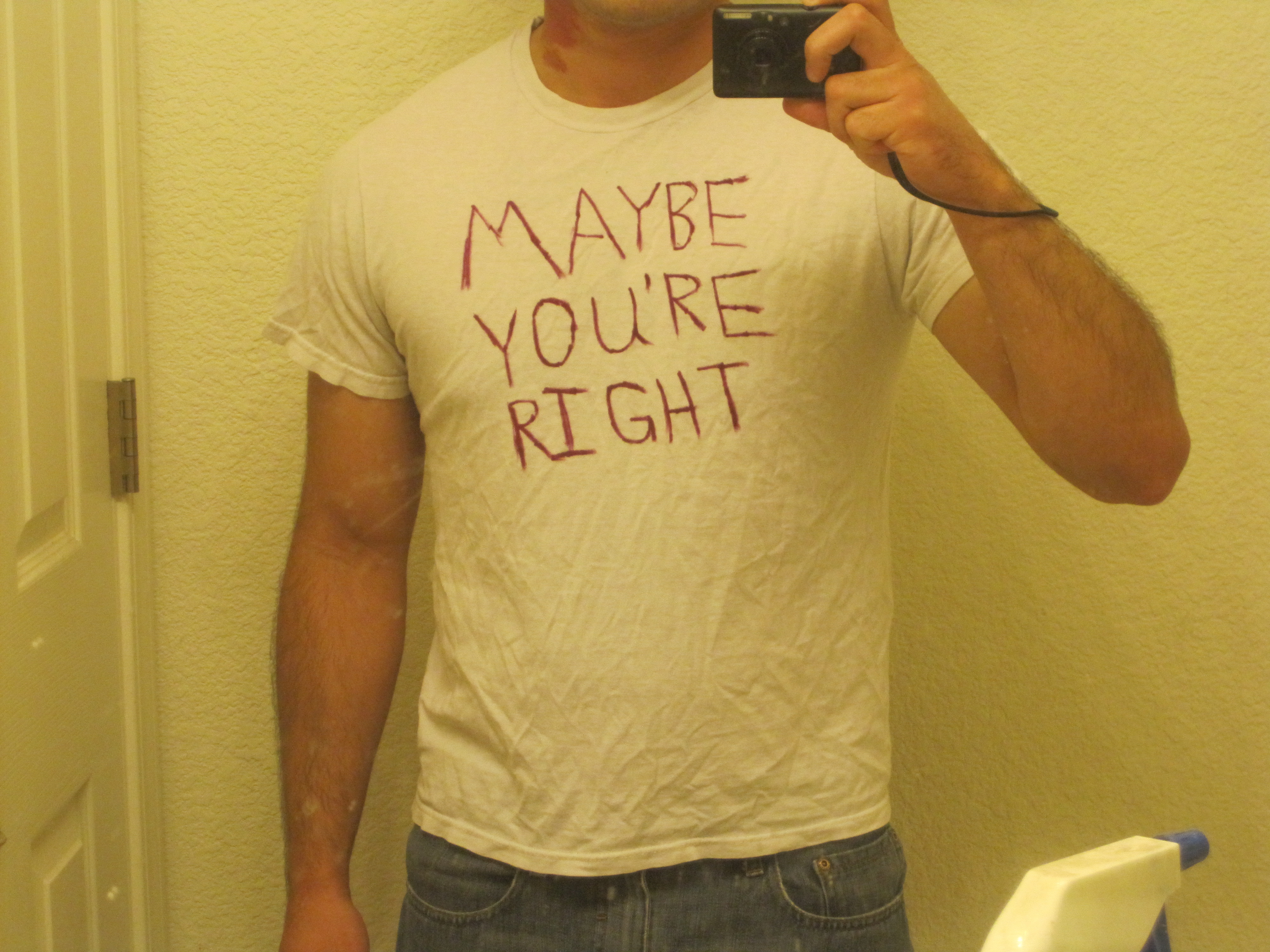 I was sitting around thinking about what I do in front of mirrors when it occurred to me, unless I'm getting ready in the morning, the only time I ever look into a mirror is for self-council. I evaluate myself and my personality. Everything from positives to negatives and a lot of times I second guess myself on all of it either making myself out to be more or less than I really am. Every evaluation of myself always ends in, "Maybe you're right."