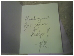 I wrote "nice to meet you." on the envelope. And it was!