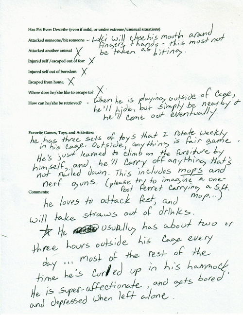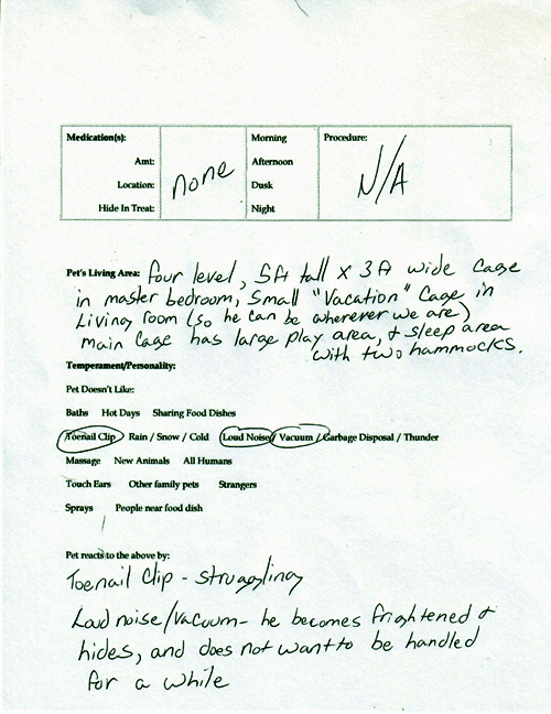 apparently i'm too dumb to figure out how to upload the form here, but, if anyone's interested, for this task or just to have a medical/behavioral/temperament history on hand for a pet, send me a message and i'll gladly email it.