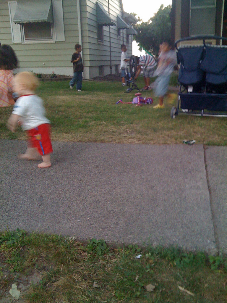 I decided to get up from the scooter and wander over to the other house. The kids followed me and tried to induce me into a game of high five. I don't really know that one yet but I tolerated their interruptions because they were being pretty nice.