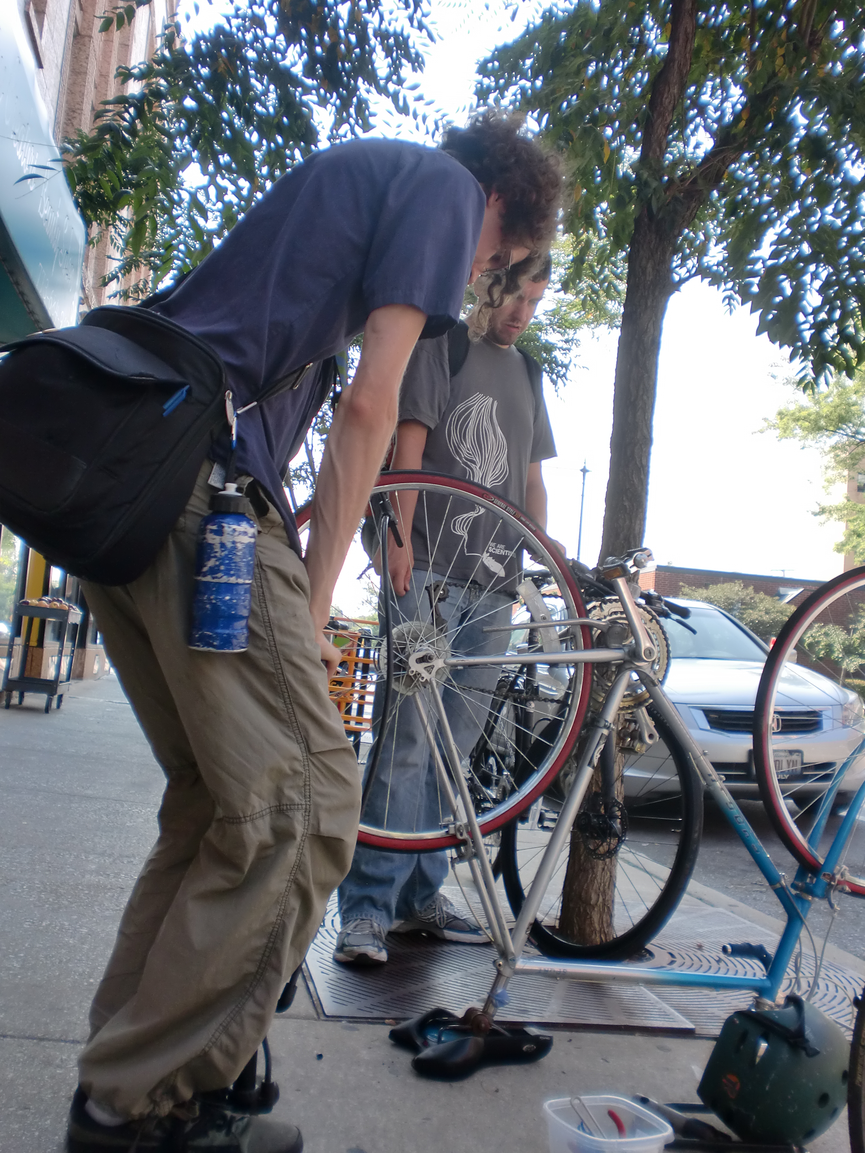 Ariadne in her wisdom has supplied us well. Food and bicycle parts, to get us through the labrynth. We encounter a fellow traveler, Donna de Fuera, lost in the labyrinth with us.