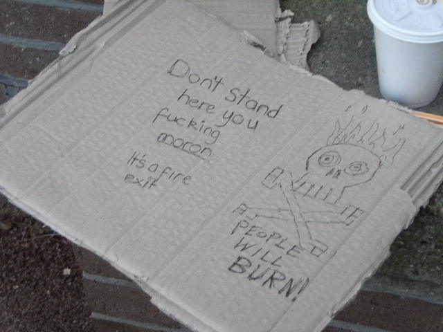 Then we decided to tell it like it is and replace a longwinded fire exit message with something a lot more straight forward.
