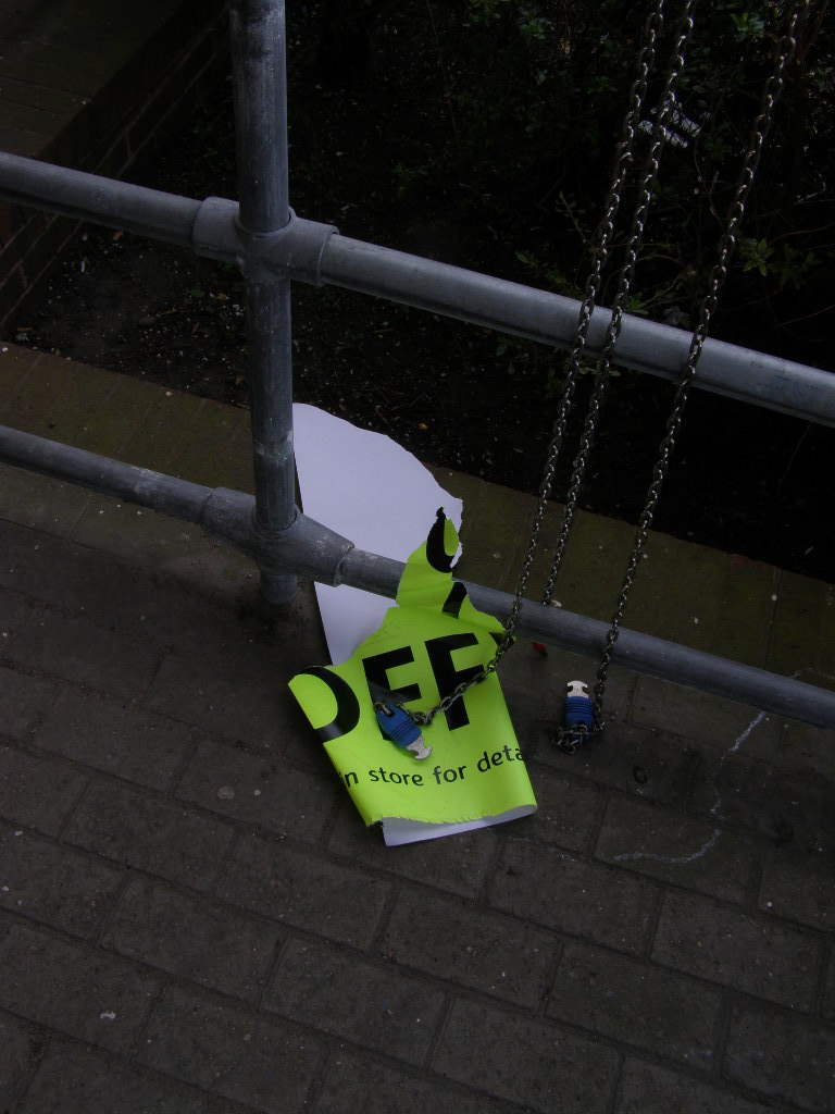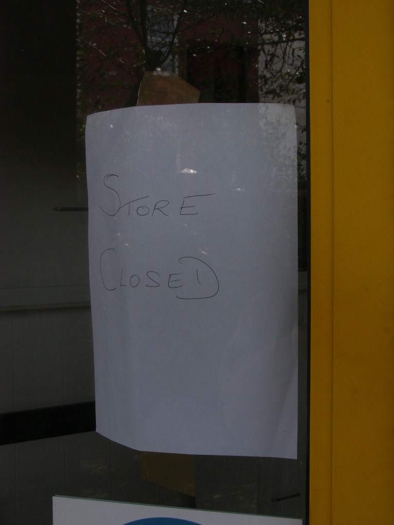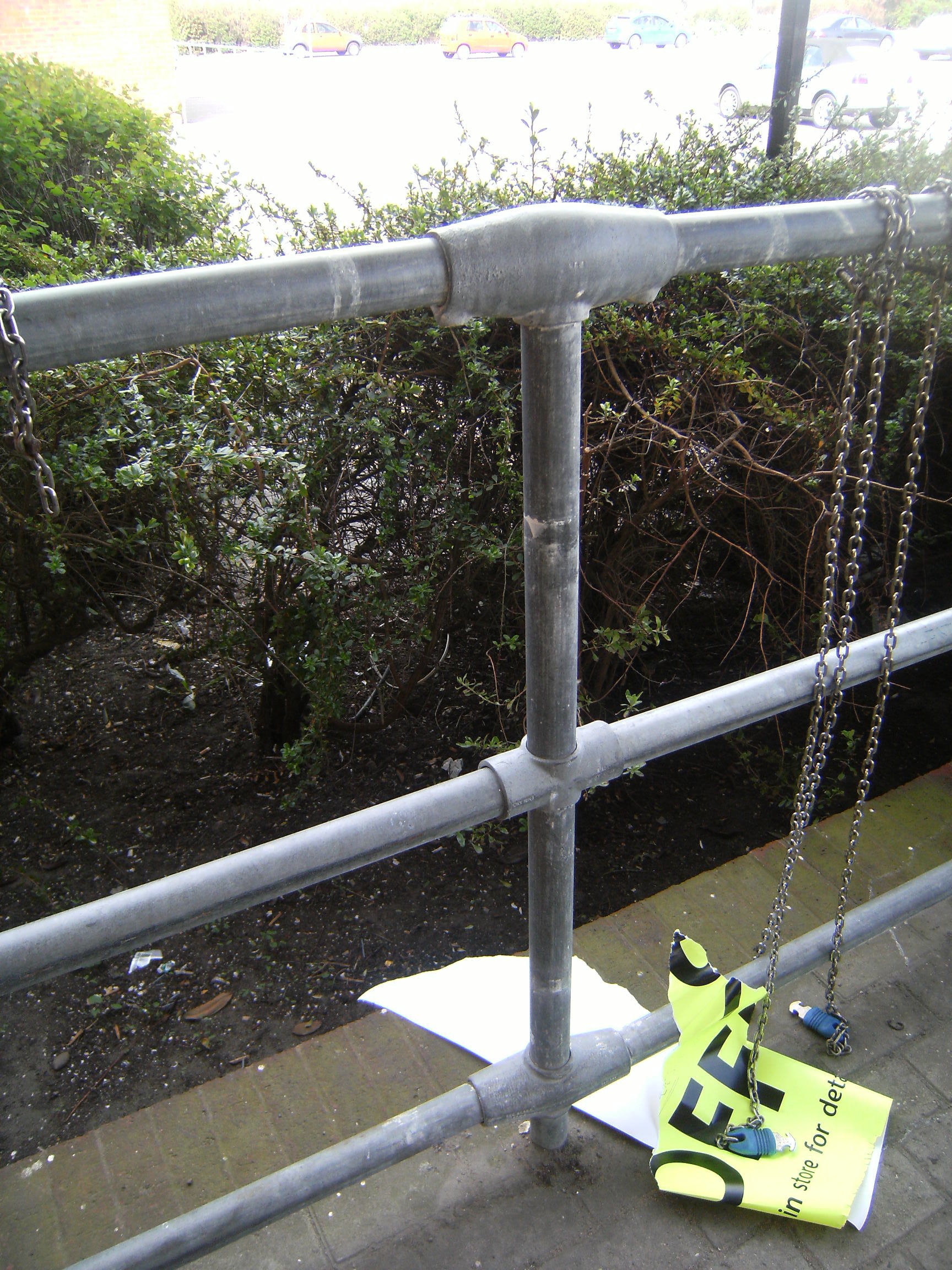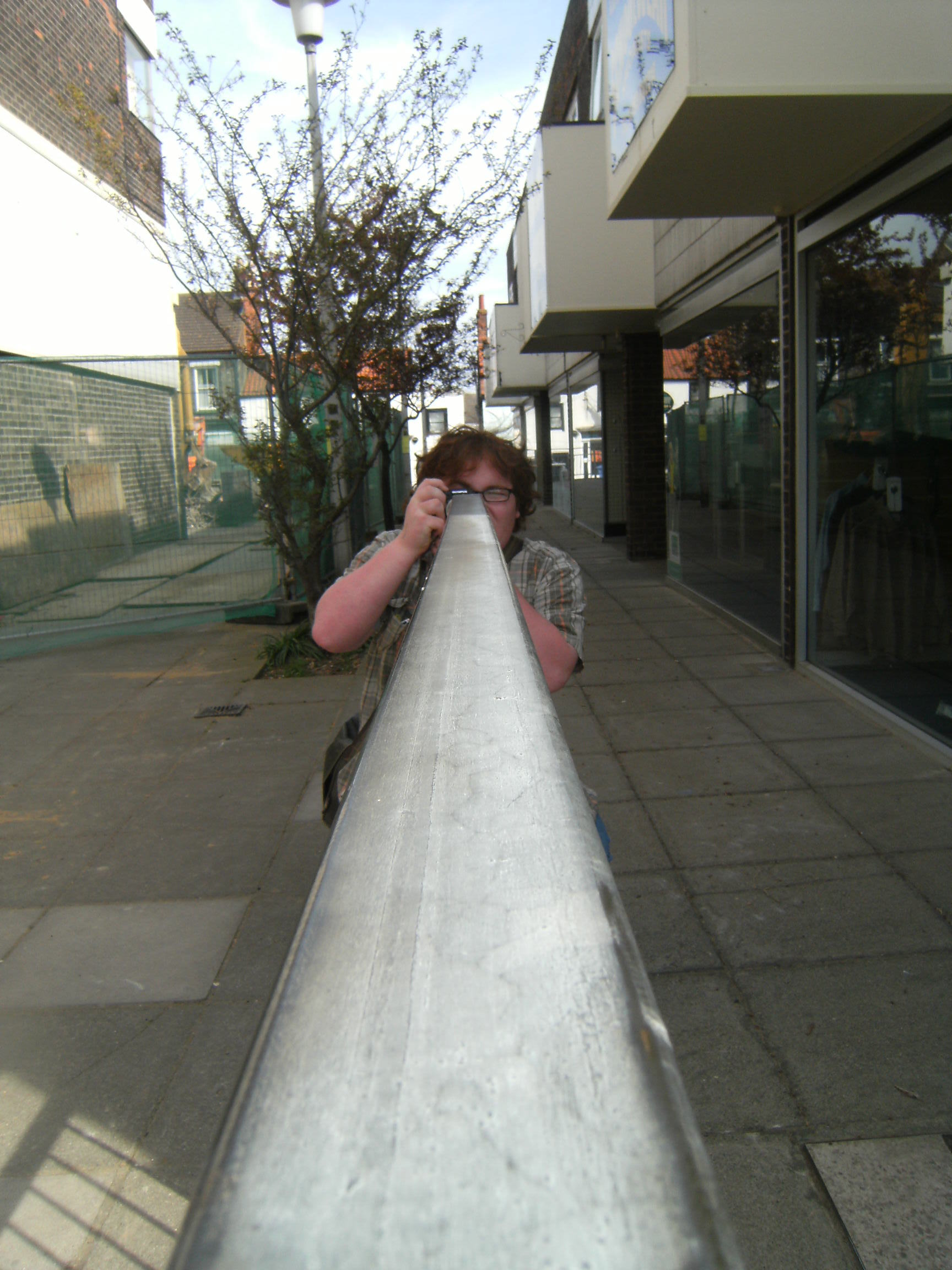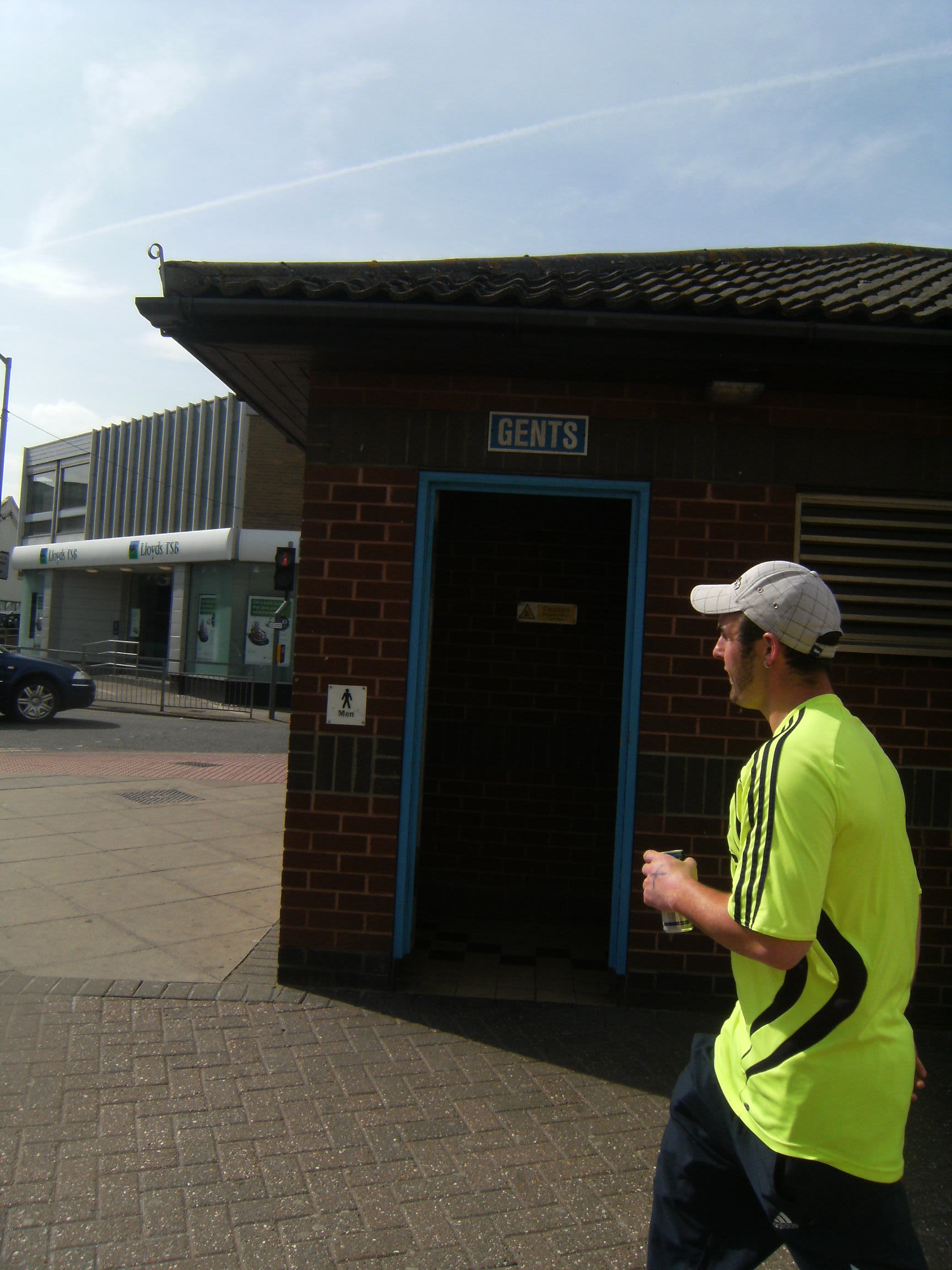 Where once was Somerfield, will soon be Morrisons.Now we are stood in a carpark. Miserable as fuck and boring to boot. So we walk away from the trees and up a hill, I hate hills, hills are the enemy of the fat. I like looking at them but I hate climbing them. We proceeded anyway and back onto the high street and then up it. Towards QD, a store I hate and then the worst thing we could have seen. "Health Food Centre". Given the nature of this task this store had "Reversed-Polarity Derive" written all over it. Once we had seen the horrors of this awful, awful place we went onwards to the rather grandly named "Precinct". It isn't a precinct, it's not even anything like it. It's a clothes shop and a cafe. This is somewhere neither of us had been, or even wanted to go, before and so we moved swiftly on, through a car park and ended up doing a circle and ending up at a bus stop again.