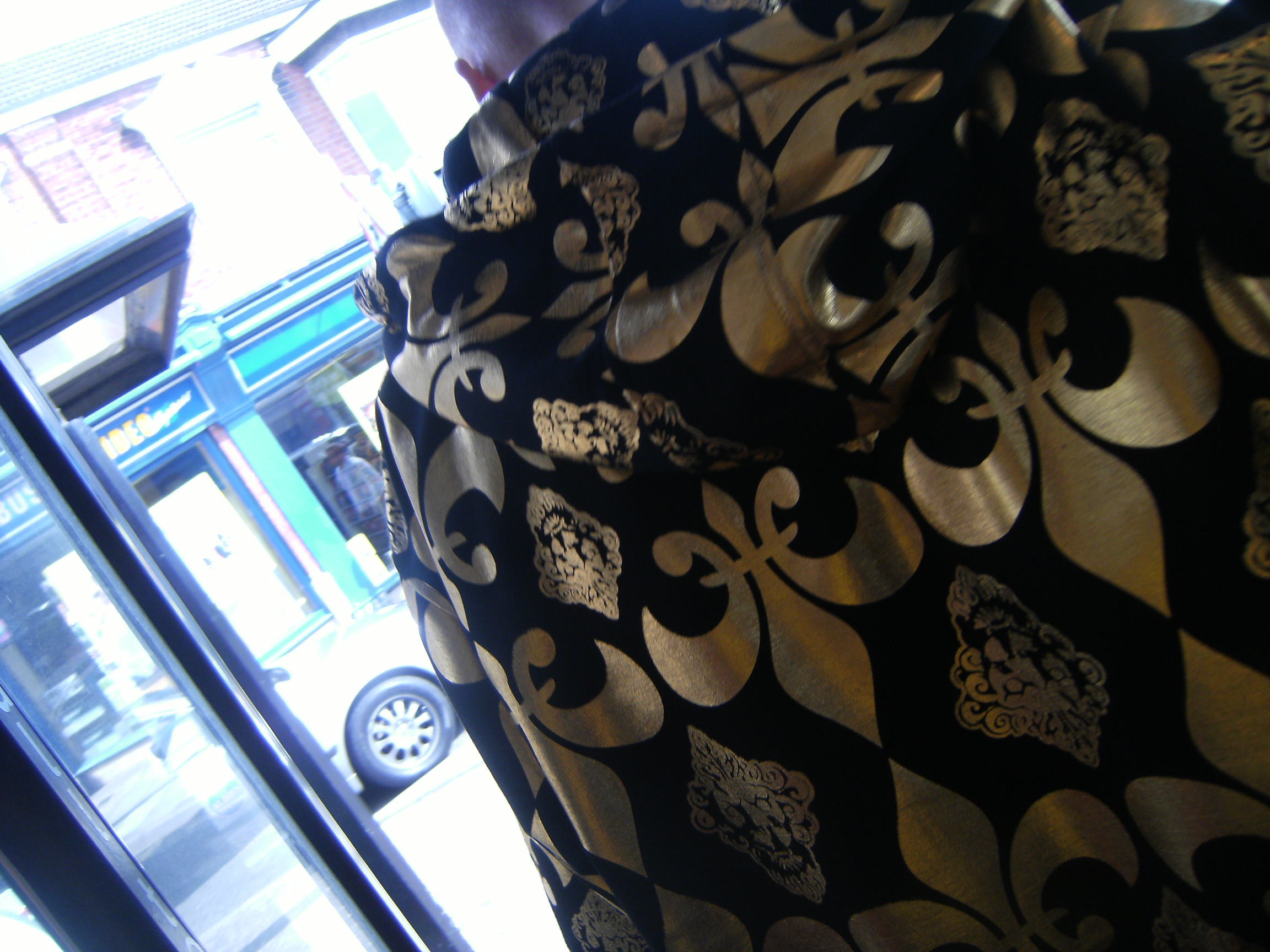 Yuck, a bus and Gorleston. Truly miserable.And so we boarded the number 8 bus which travels through Yarmouth and onto our sister-town of Gorleston, which I hate and Tom hates as it is boring as hell and there are no decent shops and many old people. The bus journey was awful as is per usual, apart from a man with a high-score jacket, golden fleur-de-lis all round.