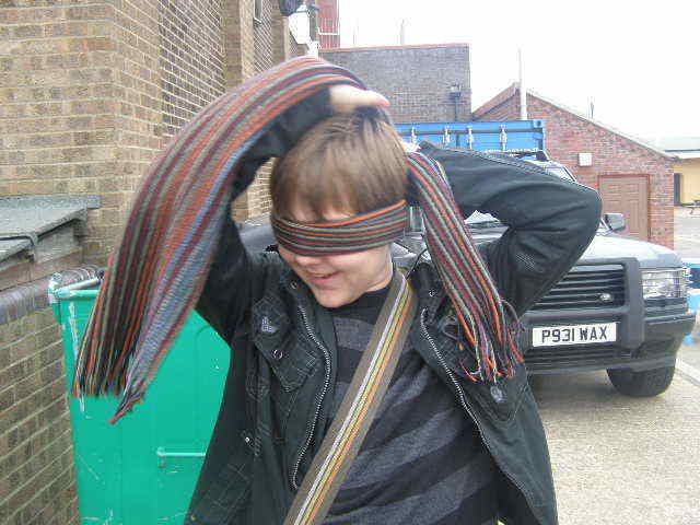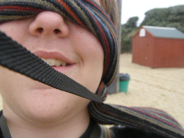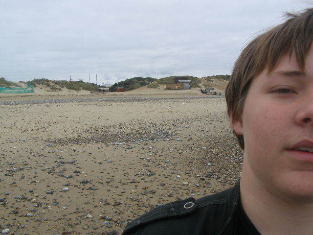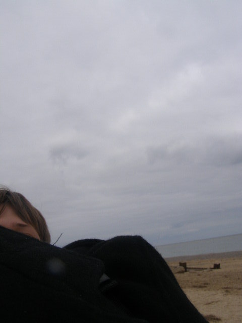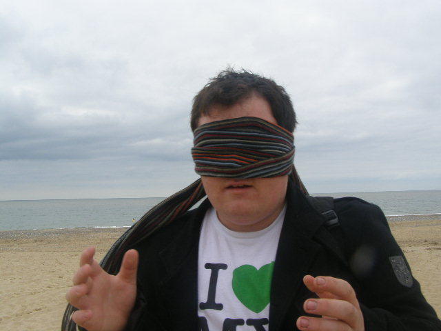 I was up first, blindfolded with Adams handy scarf, I was led down to the beach. With shouts from people around us trying to get me to remove the blindfold prematurely. They worked, and I had to be reblinded several times. Once down on the beach, I started snapping off photos, getting one of the floor, and the way I'd been led down straight away. Adam was the recipient of another photograph, being located by sound. A picture of the wooden walkway seemed interesting so that was taken, and things slowed down a little. Deciding to get a bit of variety we walked further onto the beach. I promptly walked into a fence, backed away and got a photo of it, which is my personal favorite of mine. Then I snapped off a photo in a random direction, and got an okay picture of the Hemsby lifeboat station. Walking even further onto the beach, I walked straight into a telegraph pole, which was difficult to do. A photo was taken. Then, whilst moving around the pole, I walked into the bin next to it, and that was photographed too. Finally I spun the camera around and got a photograph of blind me.