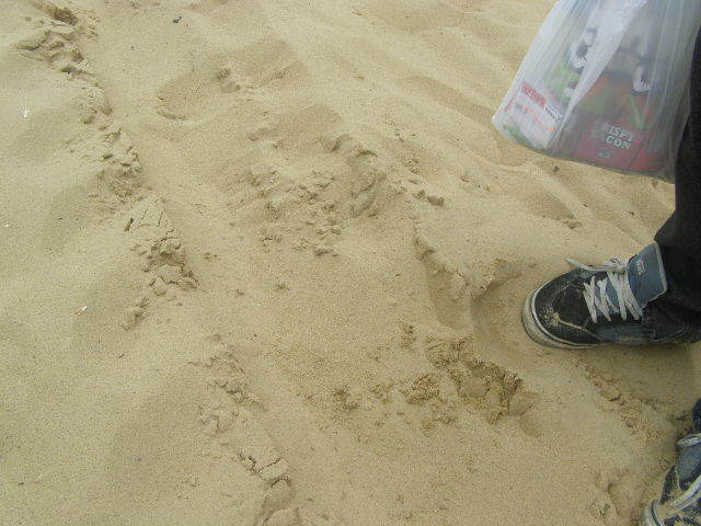 Sand, and a bit of Tom's head.