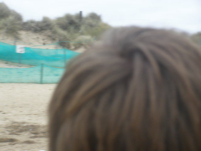 Next up was Adam, he was blindfolded and spun, and off we went. First off was the self photo, which came out rather well, then a photograph of me, that sortof missed. Next up Adam got a photo of some dog walkers whose dogs were pretty loud. At this point we decided to walk further down towards the sea, and overheard an interesting conversation. A man, talking to someone else saying 'Theres a baby penguin of the beach', with help from people remarking about it, and a tiny bit of guidance from Tom, Adam got a good photo of the 'penguin'. At this point, the task was suspended as this was a good opportunity for some good photos, the bird let us get very close, but it didn't seem injured, so we left it to its own devices and restarted the task. Reblindfolded, Adam snapped a shot of some 'sea fluff' which I think is sea water foam, evaporated leaving the salt from it, but don't quite me on it. The last 2 photos of Adams are of the sand dunes, with my head in them.