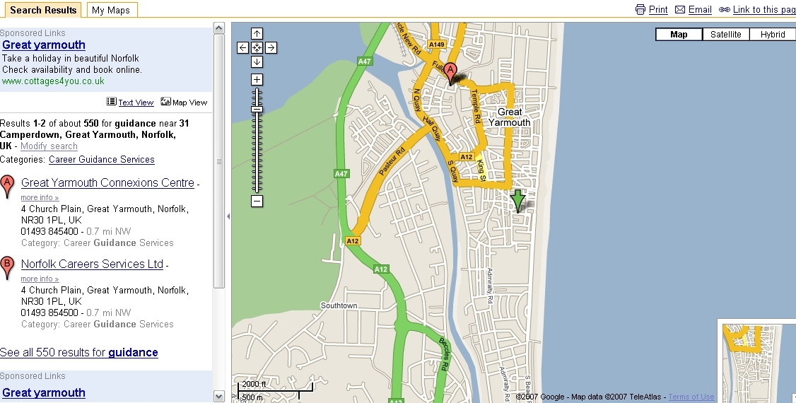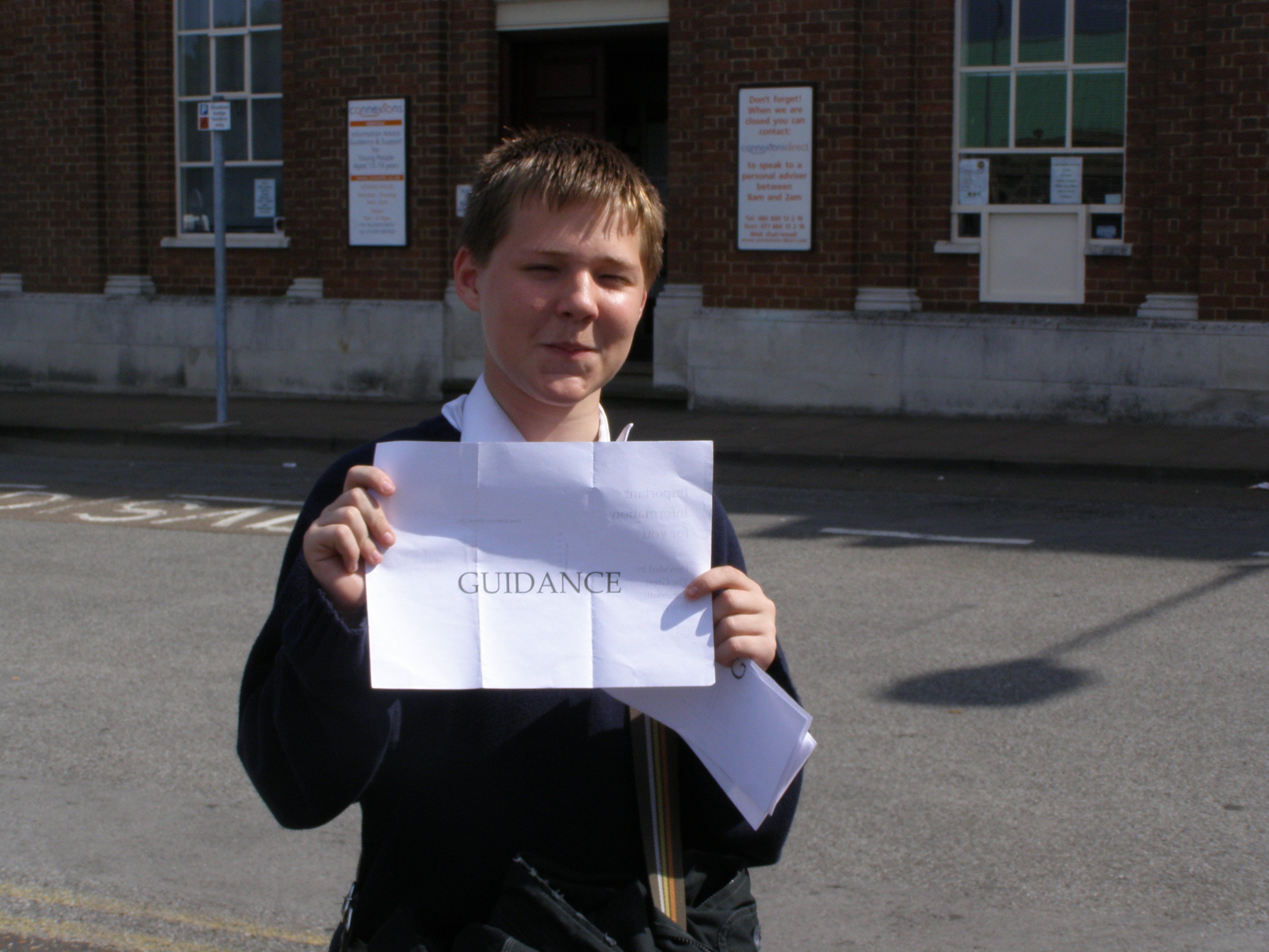 We did a Google Business Search on Guidance and it came up with the local advice centre, Connexions. It is located on The Conge to the north of the town centre. We came straight from school on the bus and arrived at the centre at about 4pm.