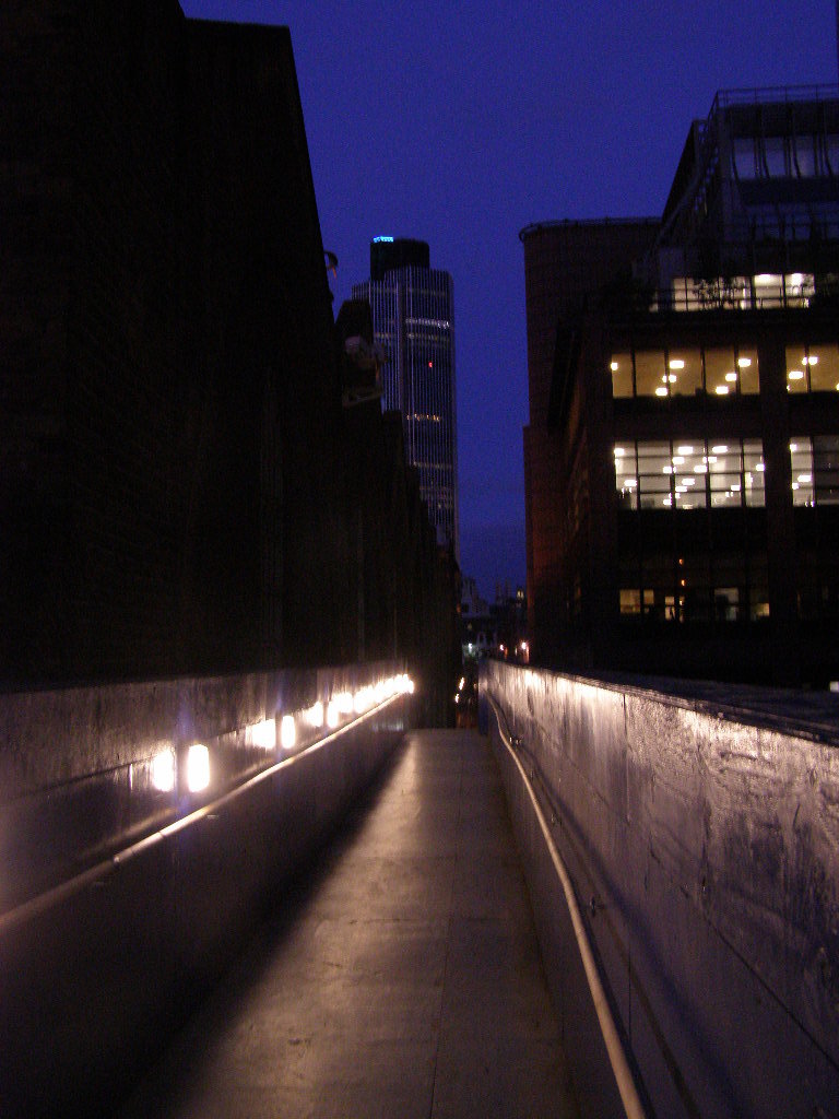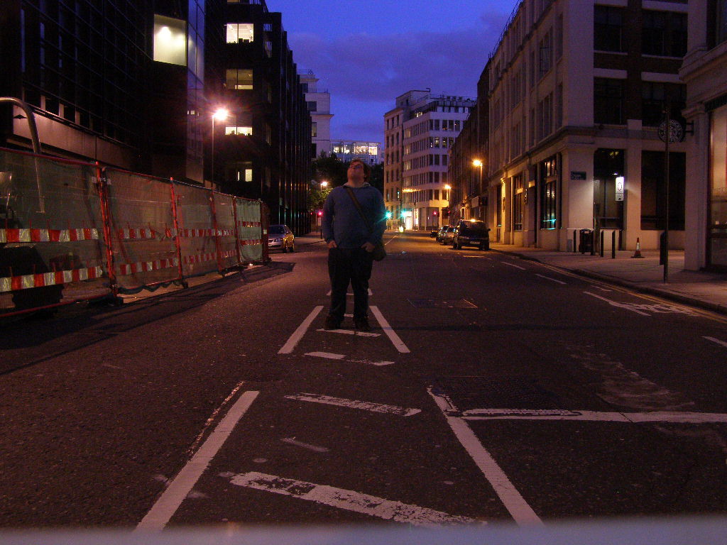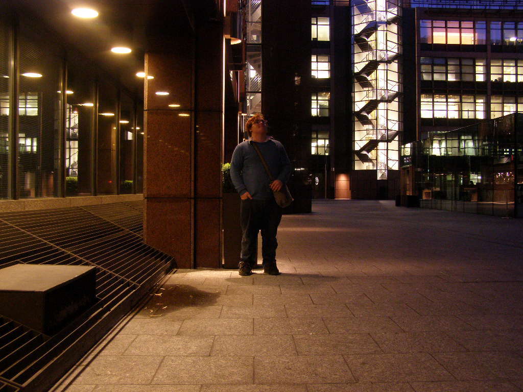 Bishopgate is a huge office development next door to Liverpool Street which, during the day, is always packed with suits and coffee cups but at 4:00 it is oddly quiet, one security guard walks past empty shops, empty roads and empty roads. It makes a great place for night photography.