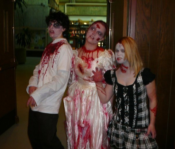 Grr, arg! Cody, Borg, and Justice as zombies. :) I did the makeup!
