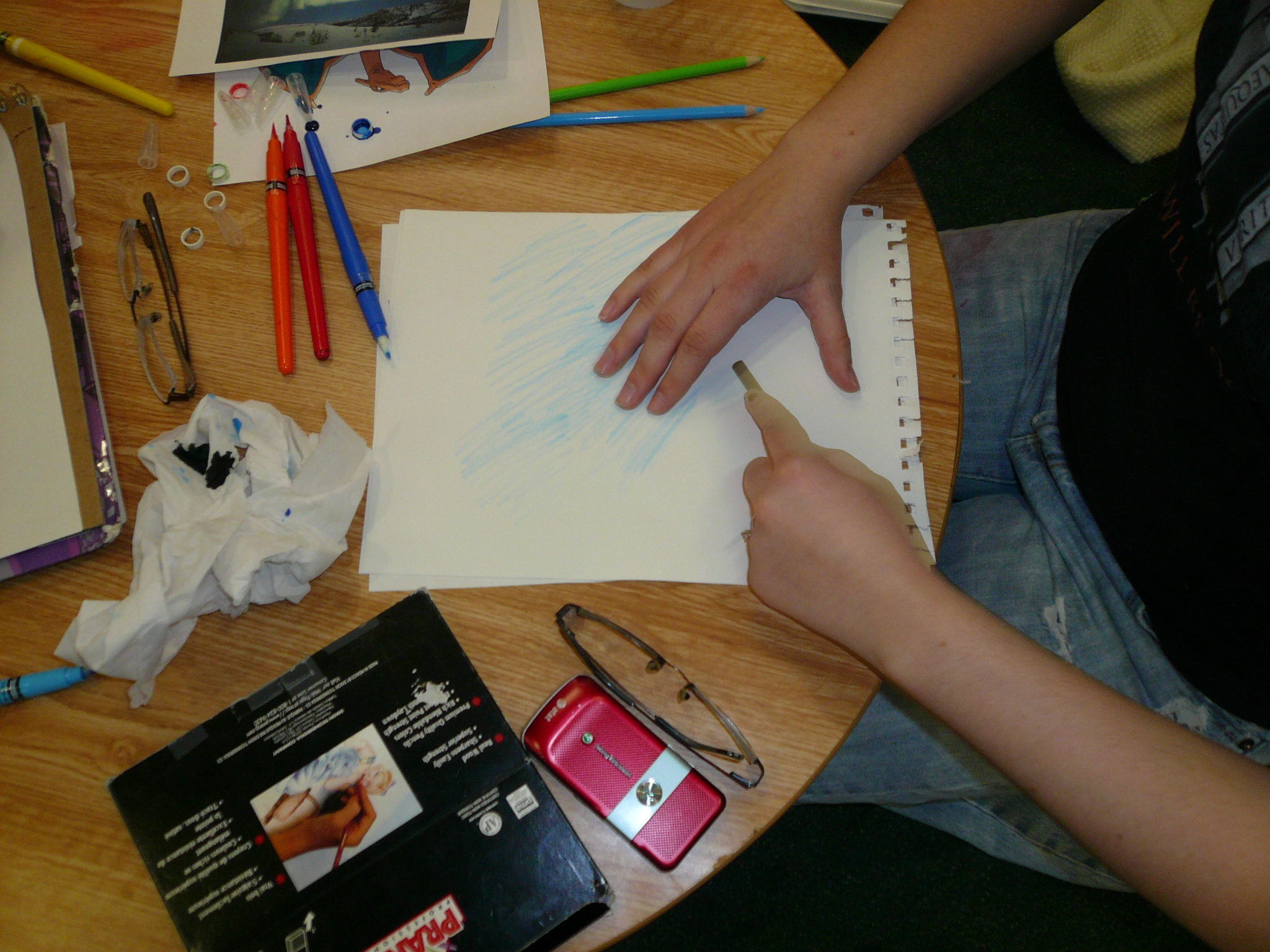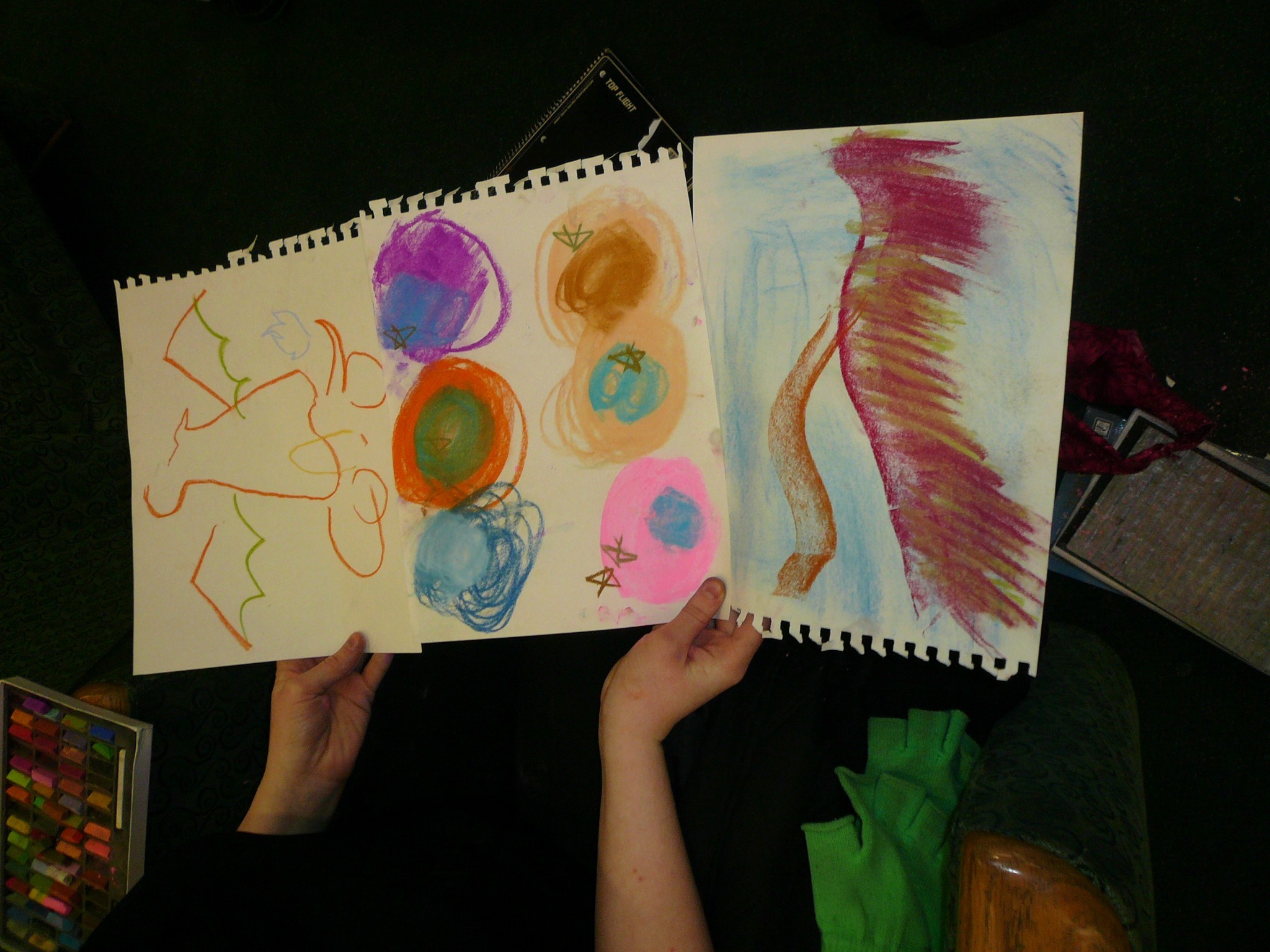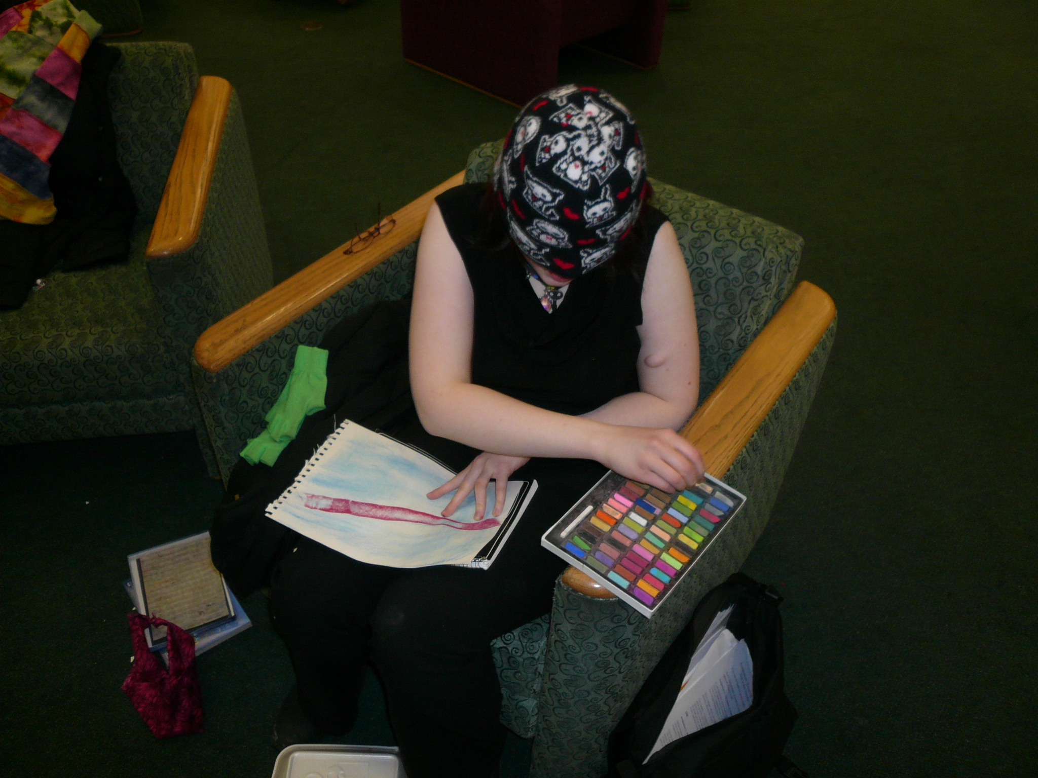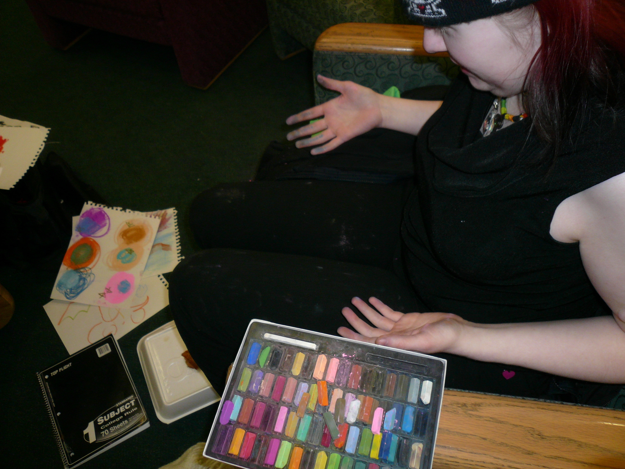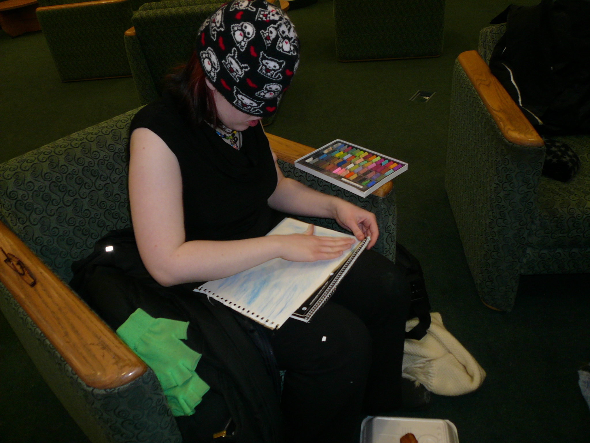 Rin kept finding JUST THE RIGHT COLOURS our of her two trillion pastels...hmmm... Rin: I counted them before I put the blindfold on to get a good idea of where they were.
