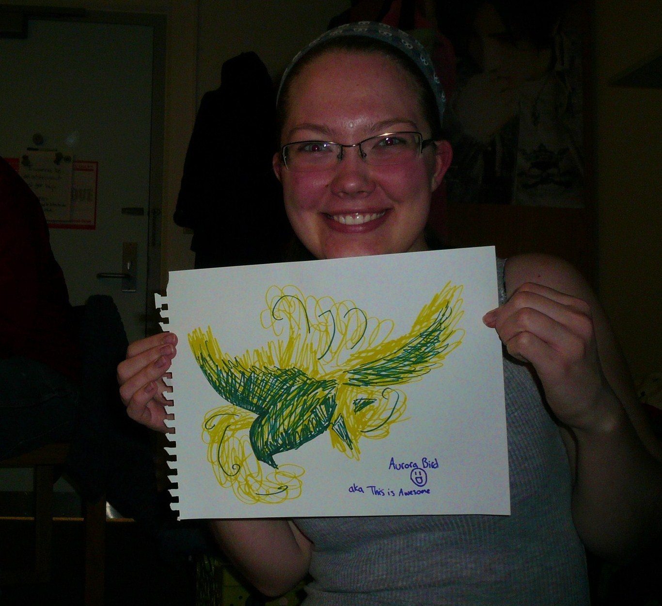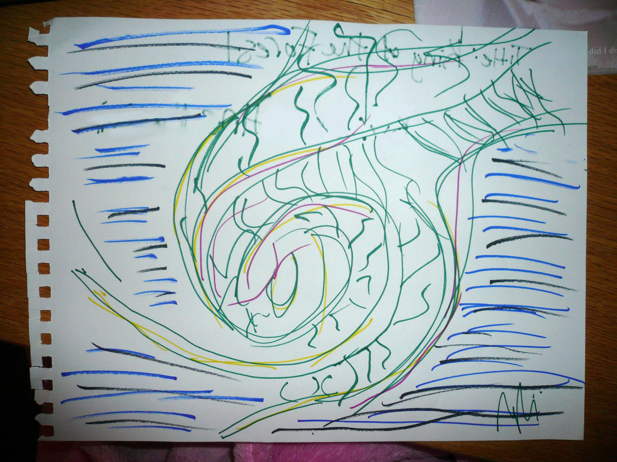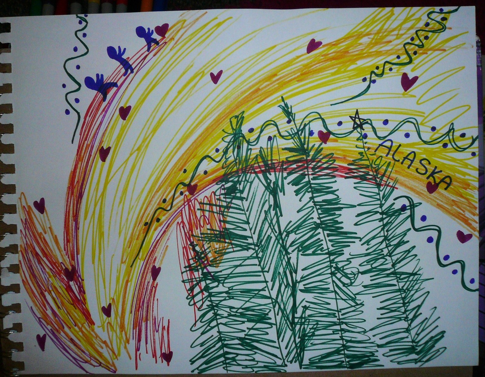 I was definitely stoned when we got back to our room and I remembered that there was a task on sf0 about making art under the influence. So, I pulled out my sketchbook as we put in Harold and Kumar go to White Castle, grabbed some coloured Sharpies and got to drawing the pictures I took of the aurora. At one point, Chef laughed at me and told me that when I got up in the morning they would not be the amazing works of art I firmly believed I was creating.
