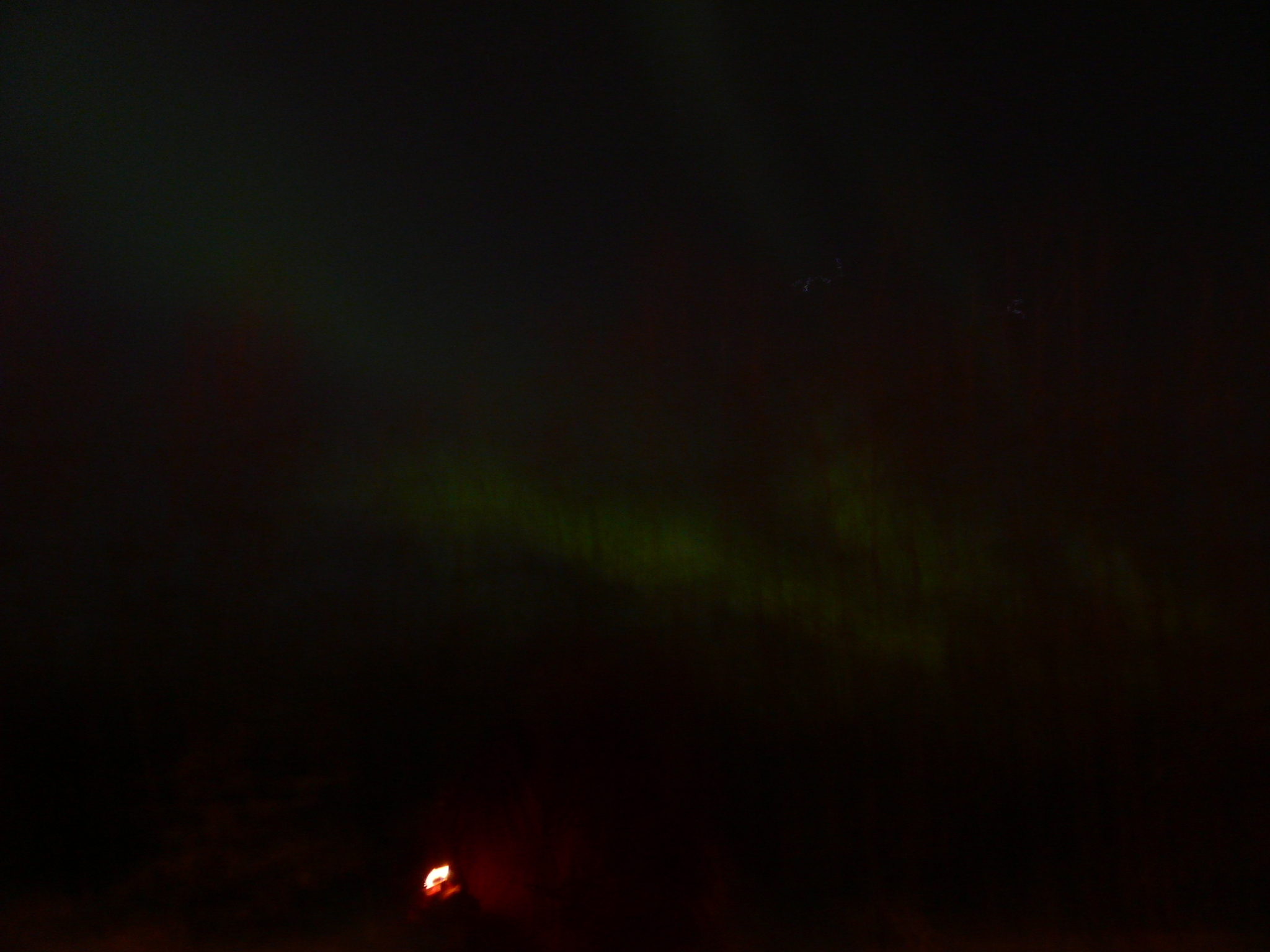 Before we even got started, the aurora came out. Our friend Chef had never seen it before and freaked out. These pictures from my camera don't do it justice at all.