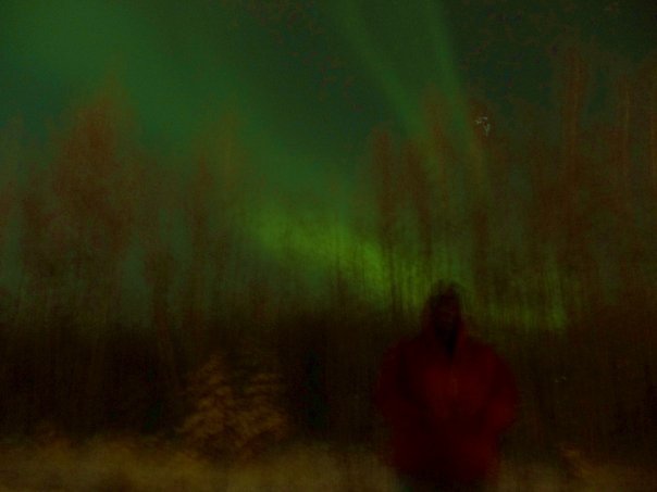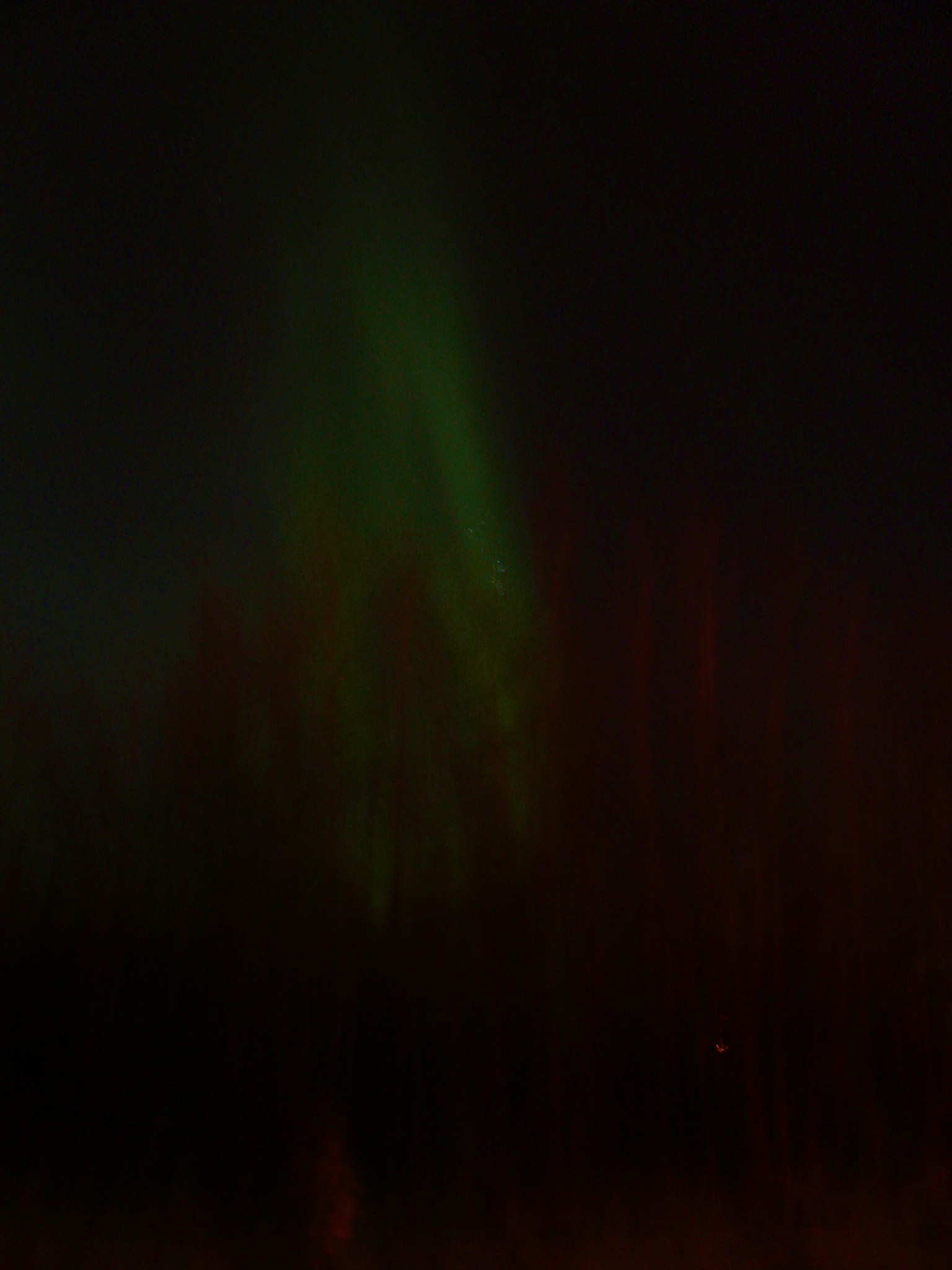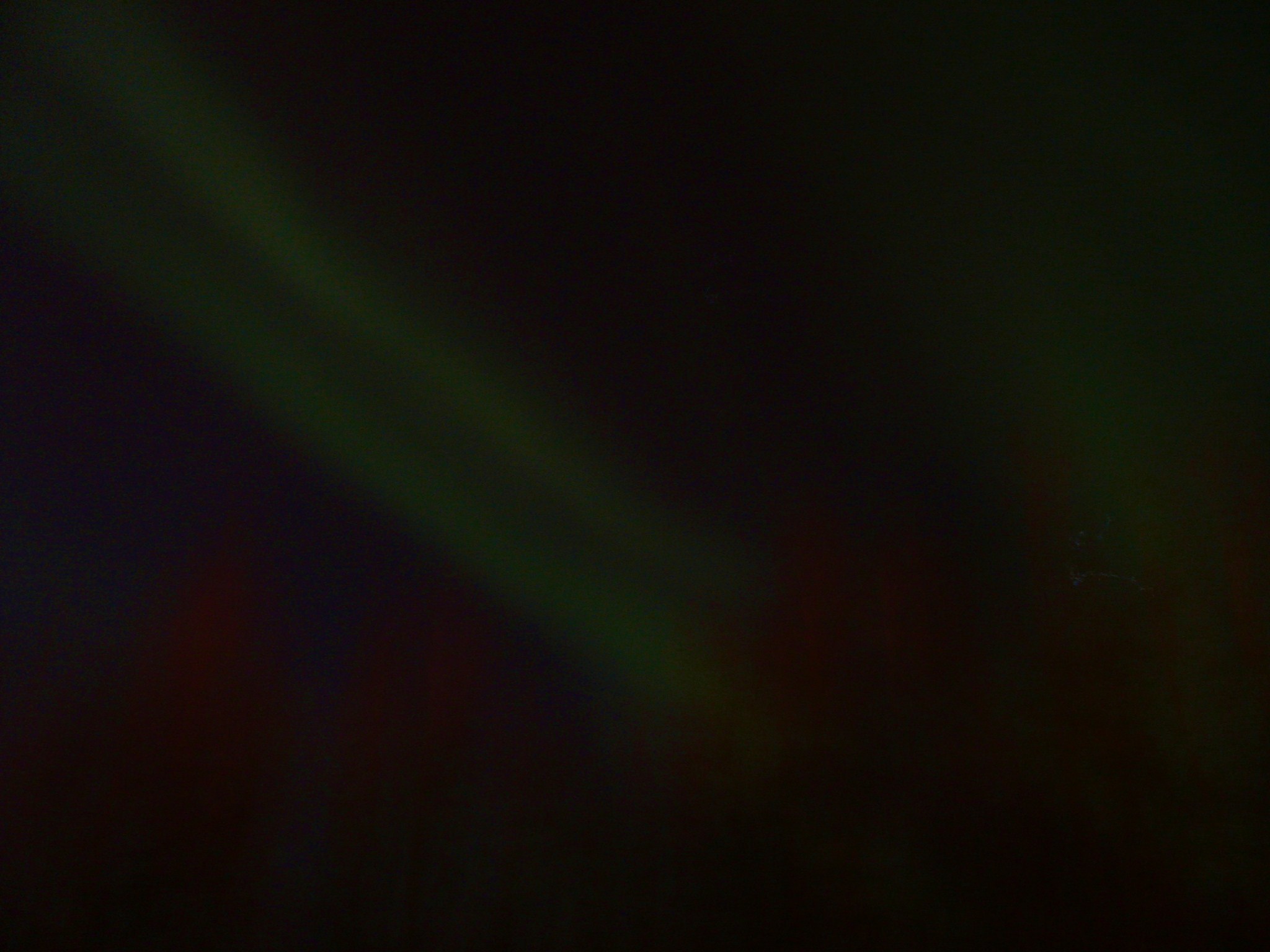 When we got outside, the northern lights (or aurora) came out. At first they were weak and Puma and I taunted them while Chef, who had never seen any aurora before, freaked out. About the time we were halfway through, however, the aurora came into full swing, filling up the ENTIRE SKY above our heads. We were all amazed and started jumping around and taking pictures.
