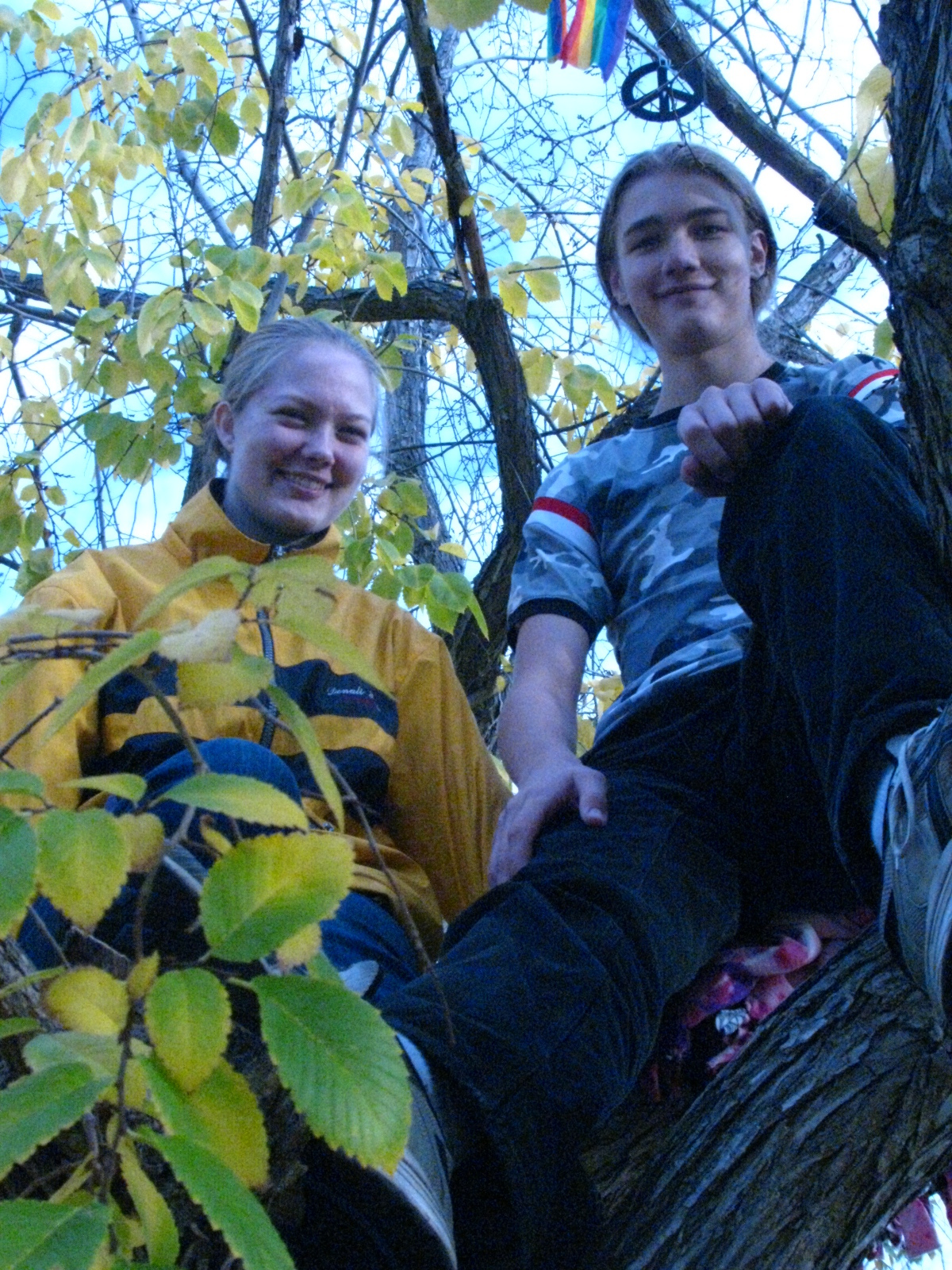 The most wonderful thing happened! About an hour into my time in the tree, a bunch of little birdies came to visit me. They got really close but this is the best picture I could get. I think they thought I was part of the tree :P