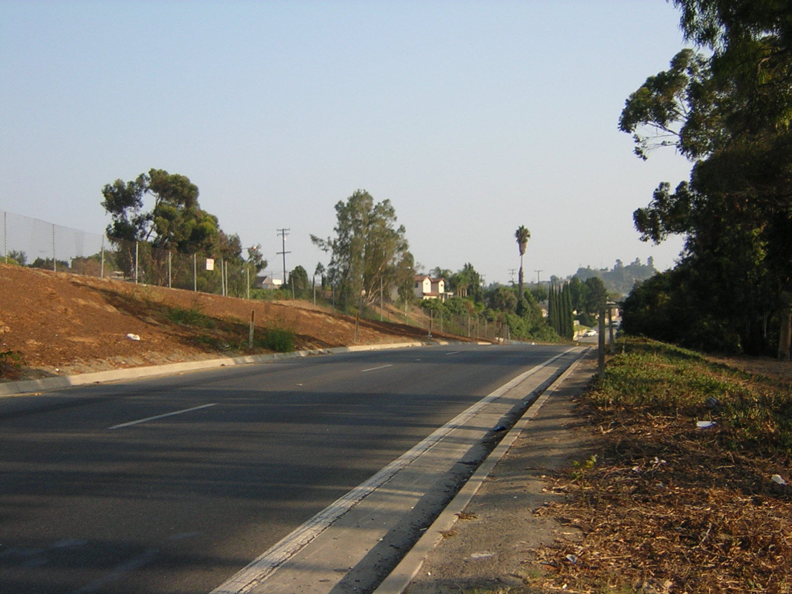 After we got the 'walk' signal, we crossed the street and began walking. Along the freeway.