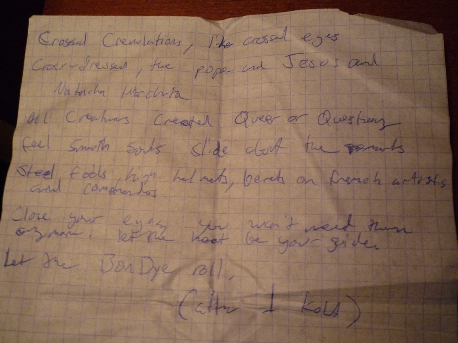 Well now, I'm getting a little weird and paranoid at this point, no? My handwriting is getting even shakier too.