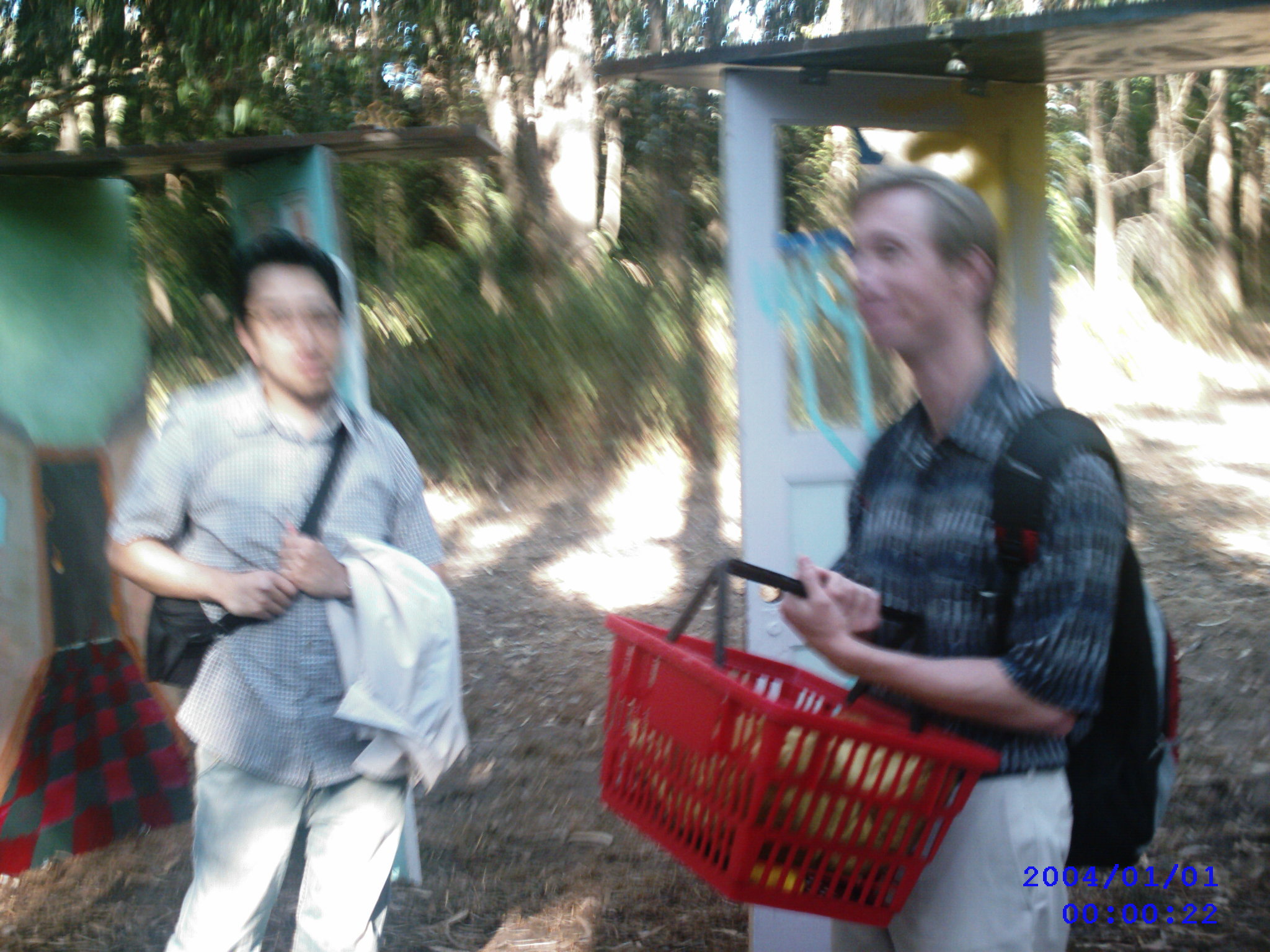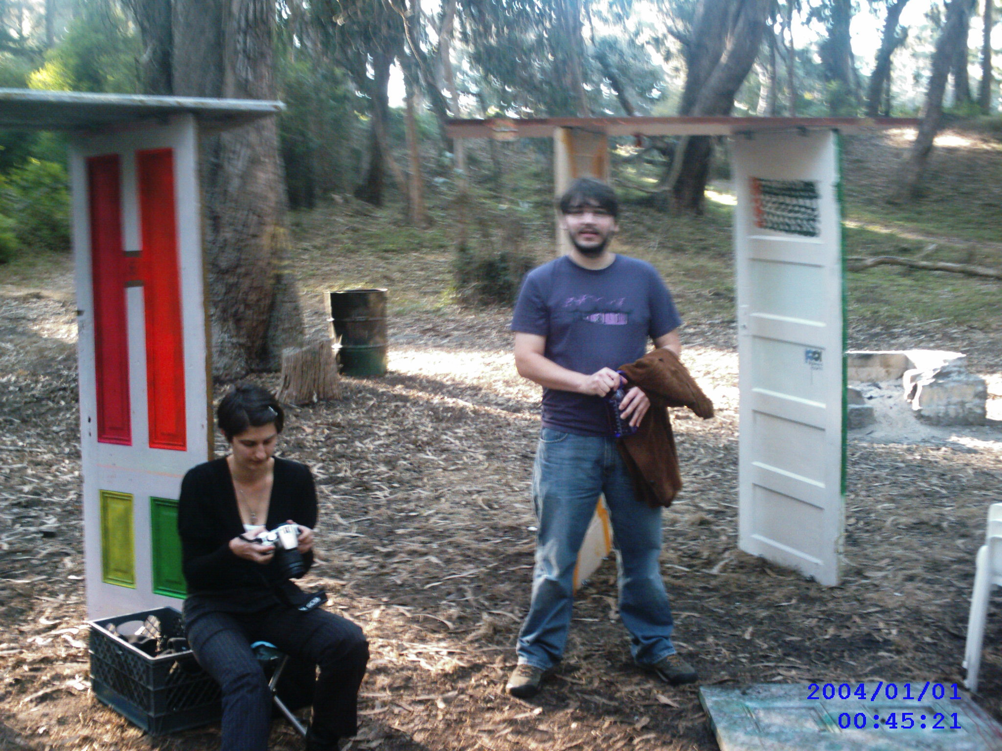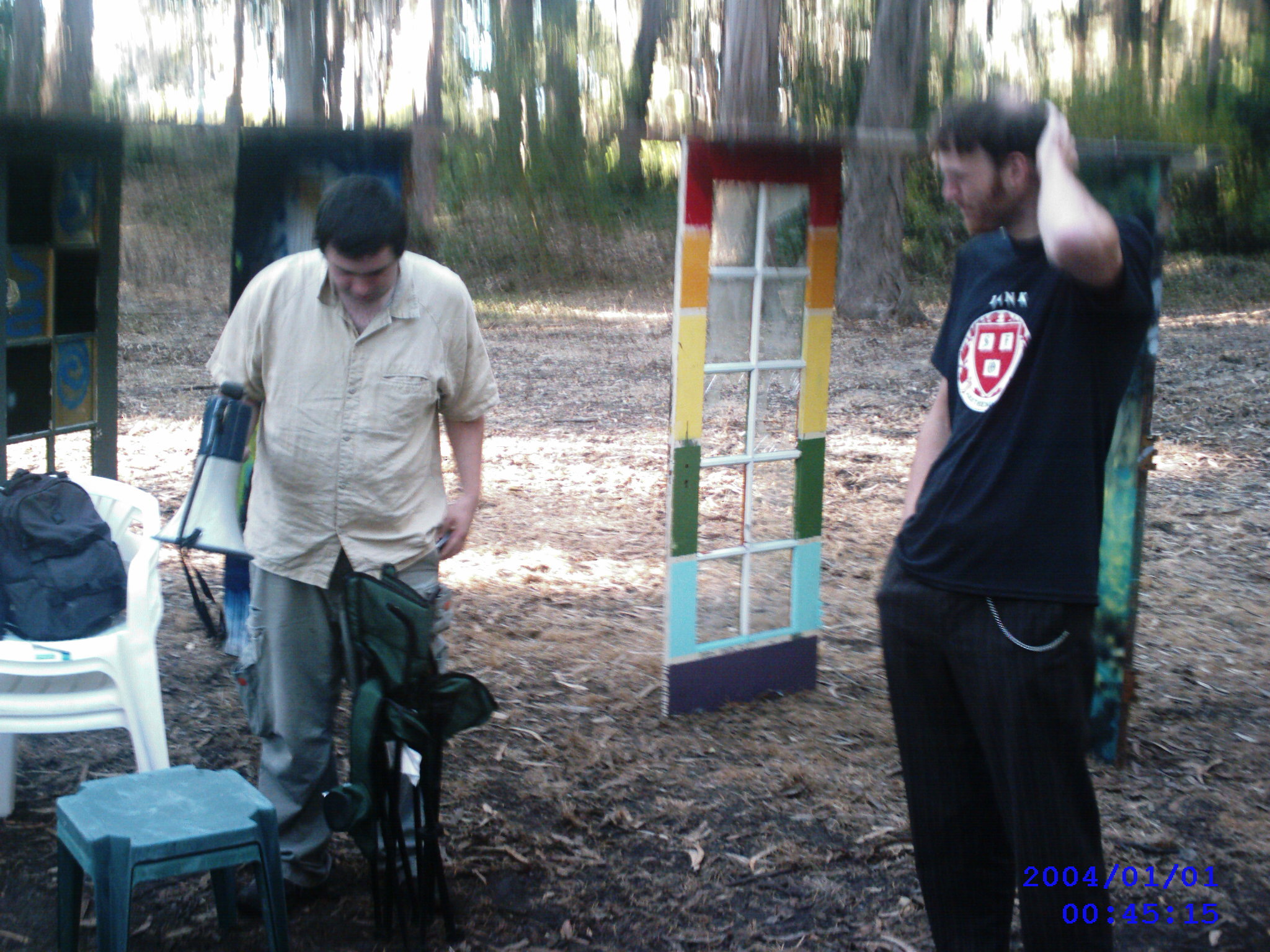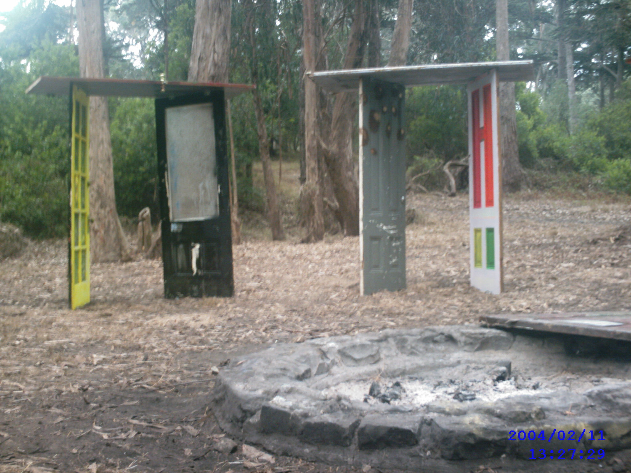 While washing up, I encountered two SF0 players more or less randomly. Lenore & Nancy Drew were coming to check out Doorhenge and I met them at the spigot. Serendipitous!