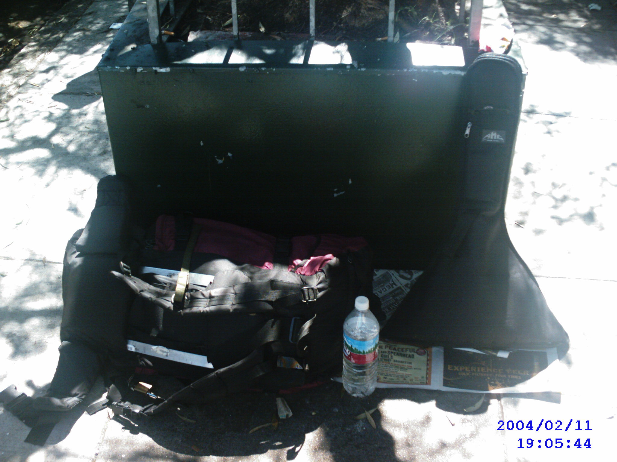 I'm in the Mission. I finally found a restaurant w/ outside seating, and amazingly enough, no awning! I was blown away with how self-conscious I've become. I've taken this big bag all over the world without a care but I feel like a freak in my own city! I don't think people are acting differently. I bet they even think I'm a foreign backpacker, but I just can't shake the feeling.