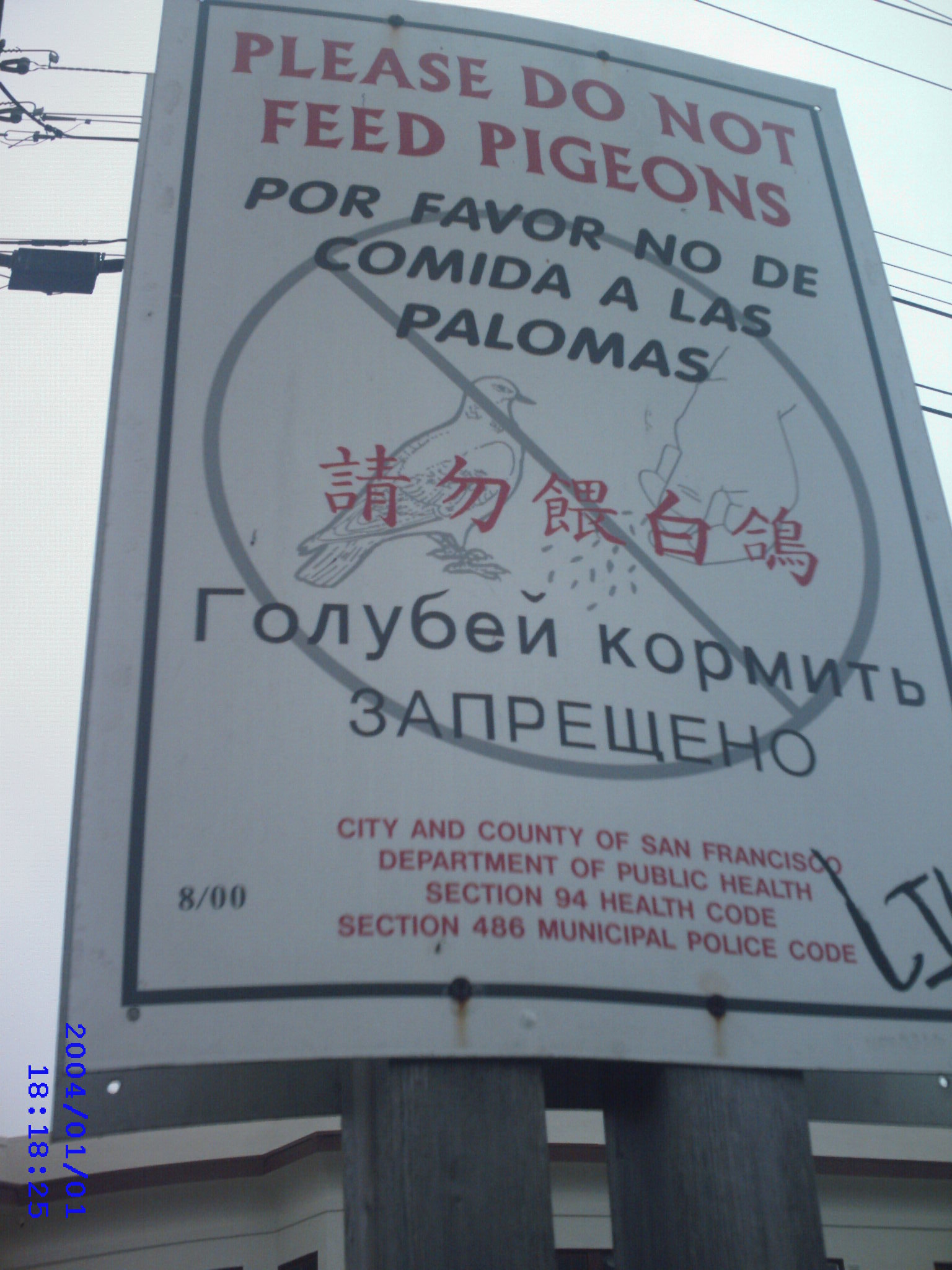 and the Richmond in particular, is that you actually have to put the signs in English, Spanish, Chinese and Russian if you don't want the pigeons fed.
