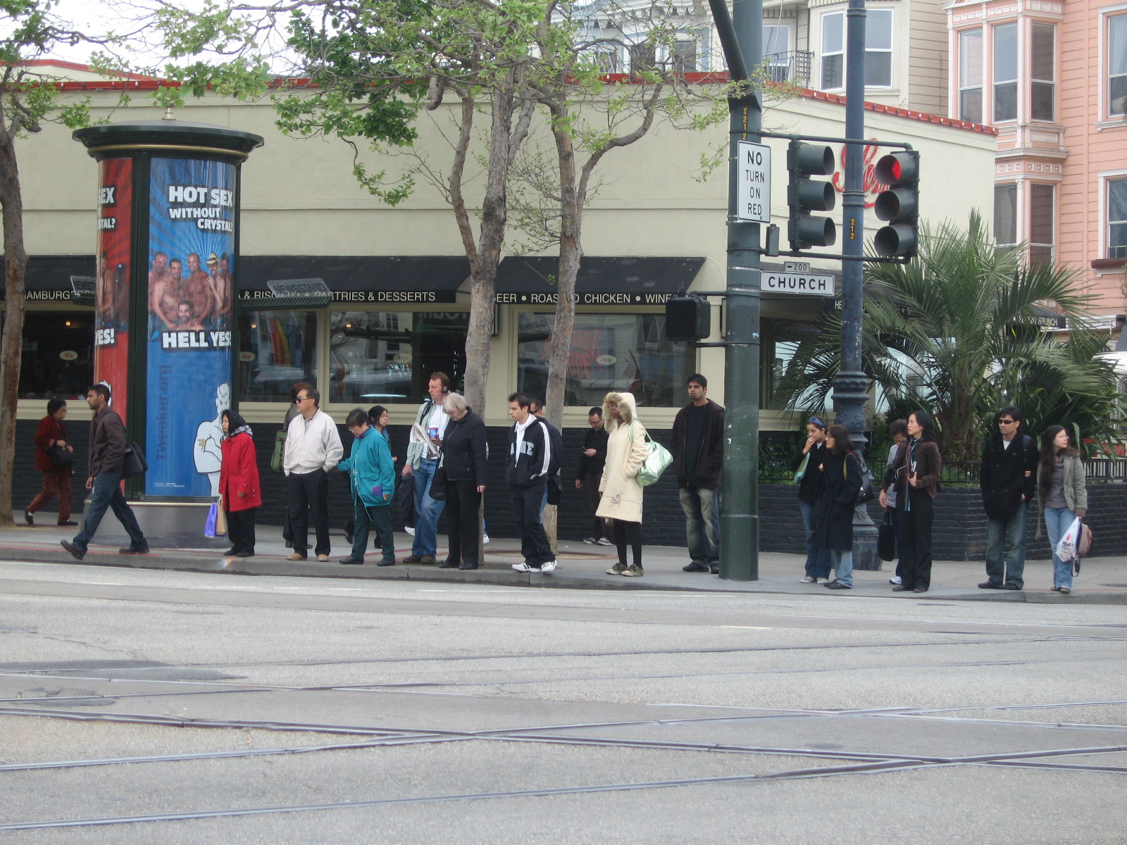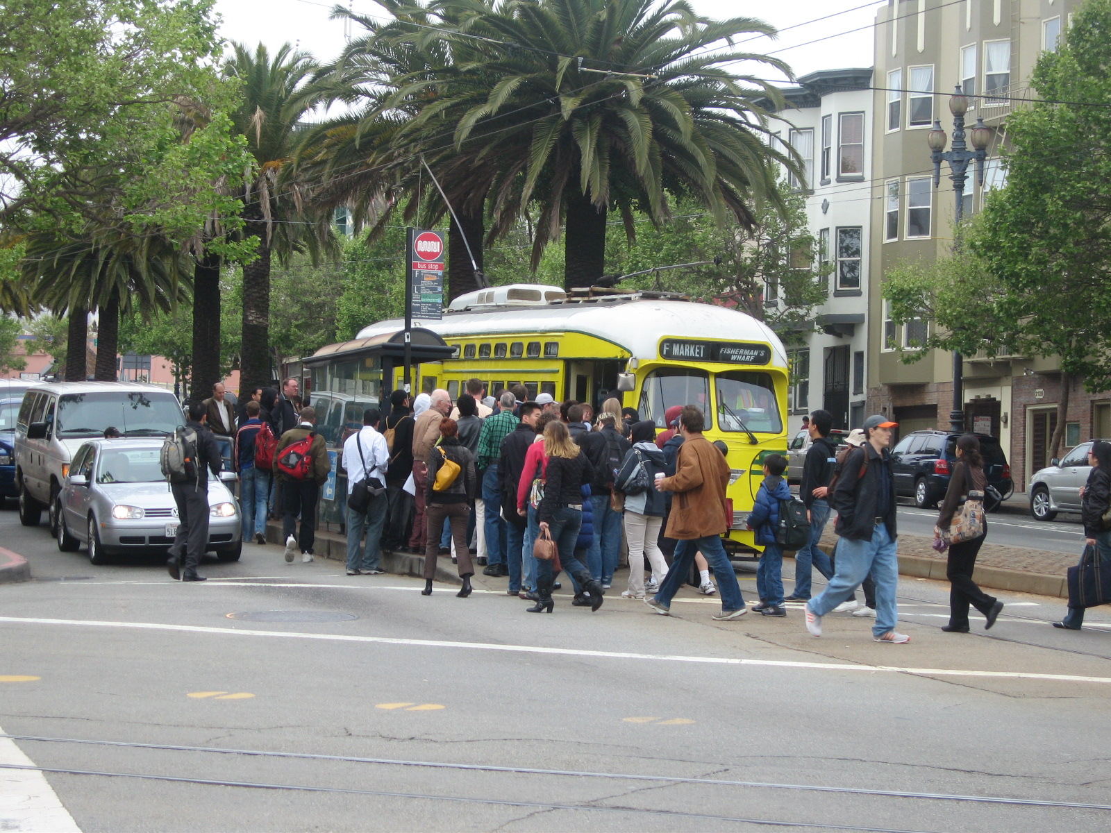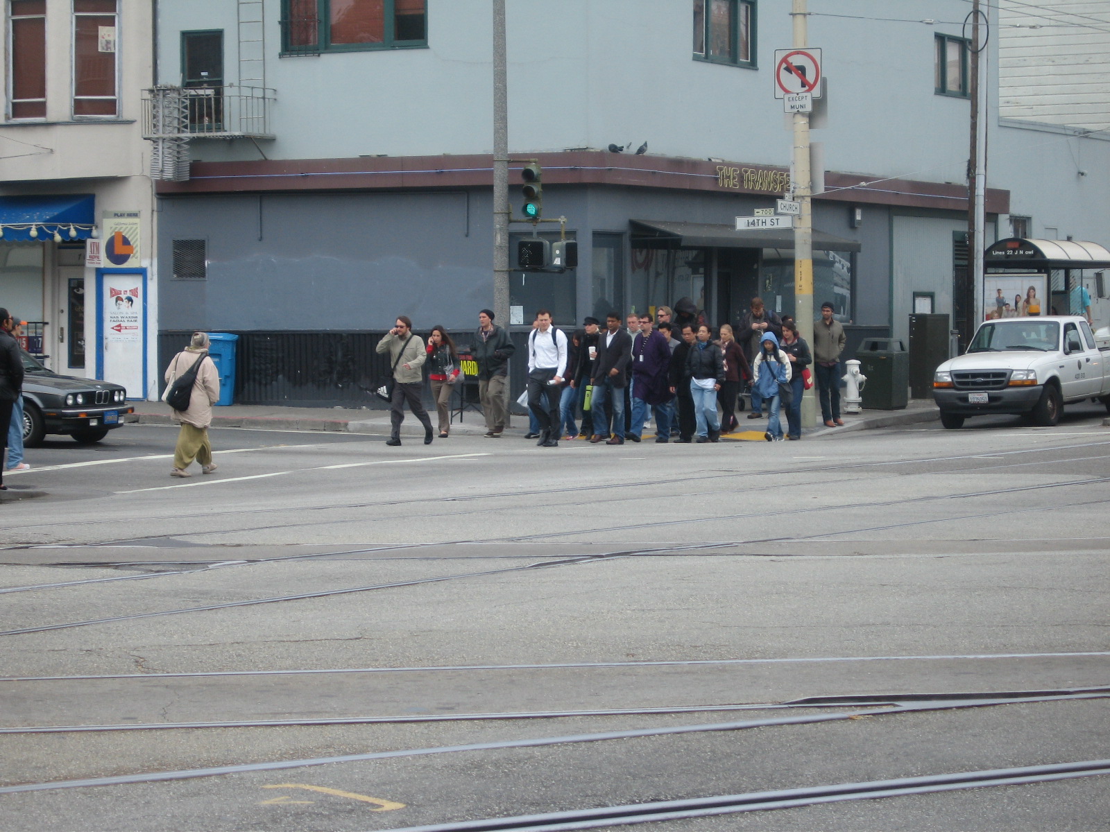 Except... well, we couldn't take a K or L or M, the subway was busted. Some of the people were standing around on the corner, looking around, awaiting some sort of direction, some of us just kept walking. When I got to Market, I saw a crowd already queuing up to try and take the F trolley. Except I imagined that just about everyone else had the same idea. What to do?