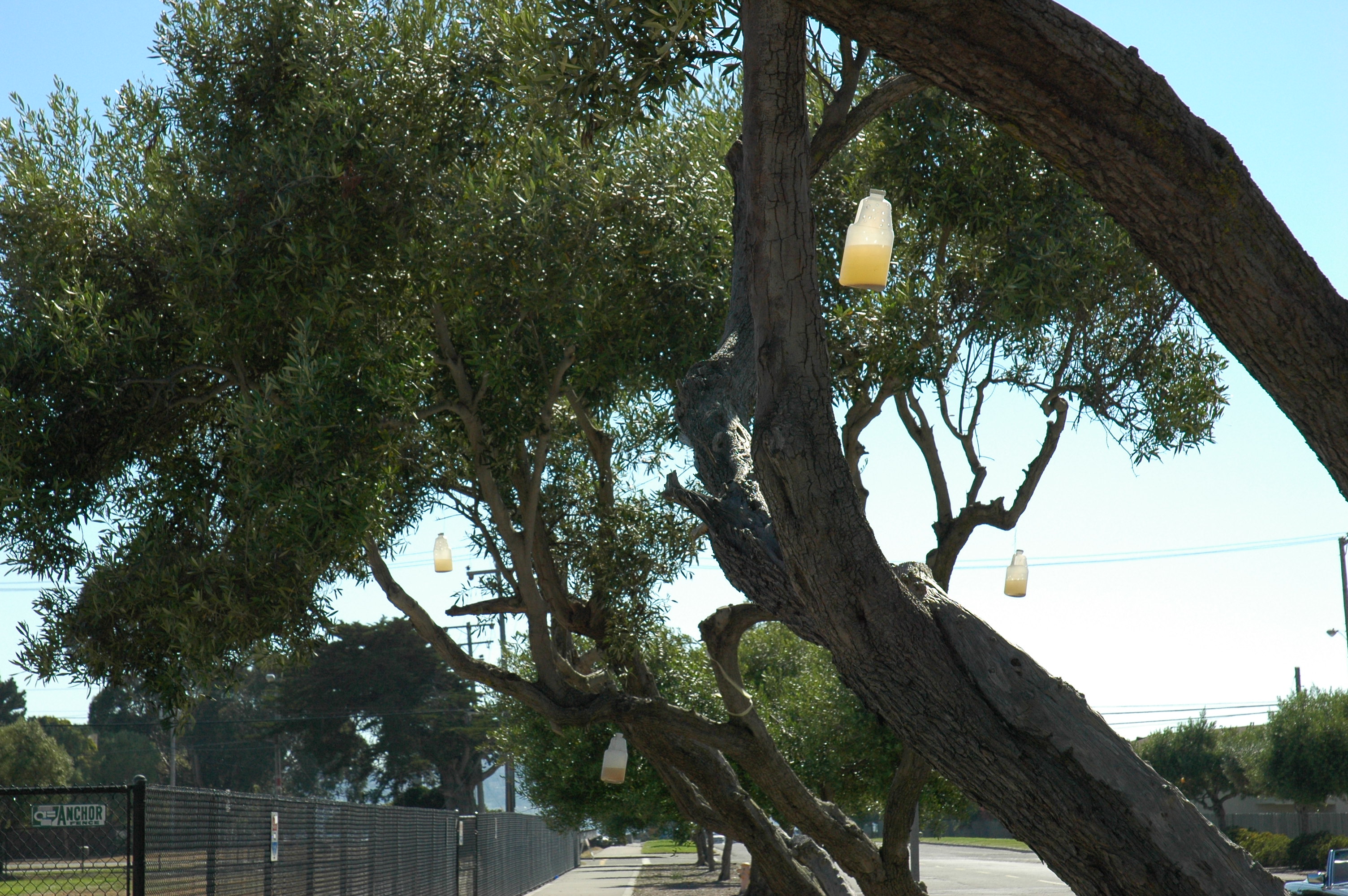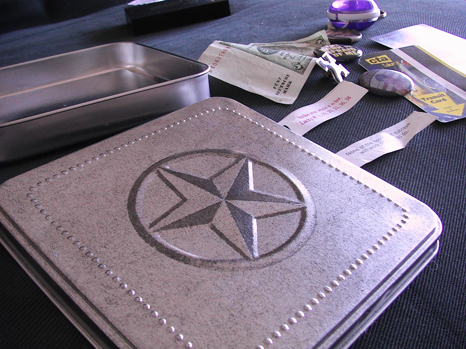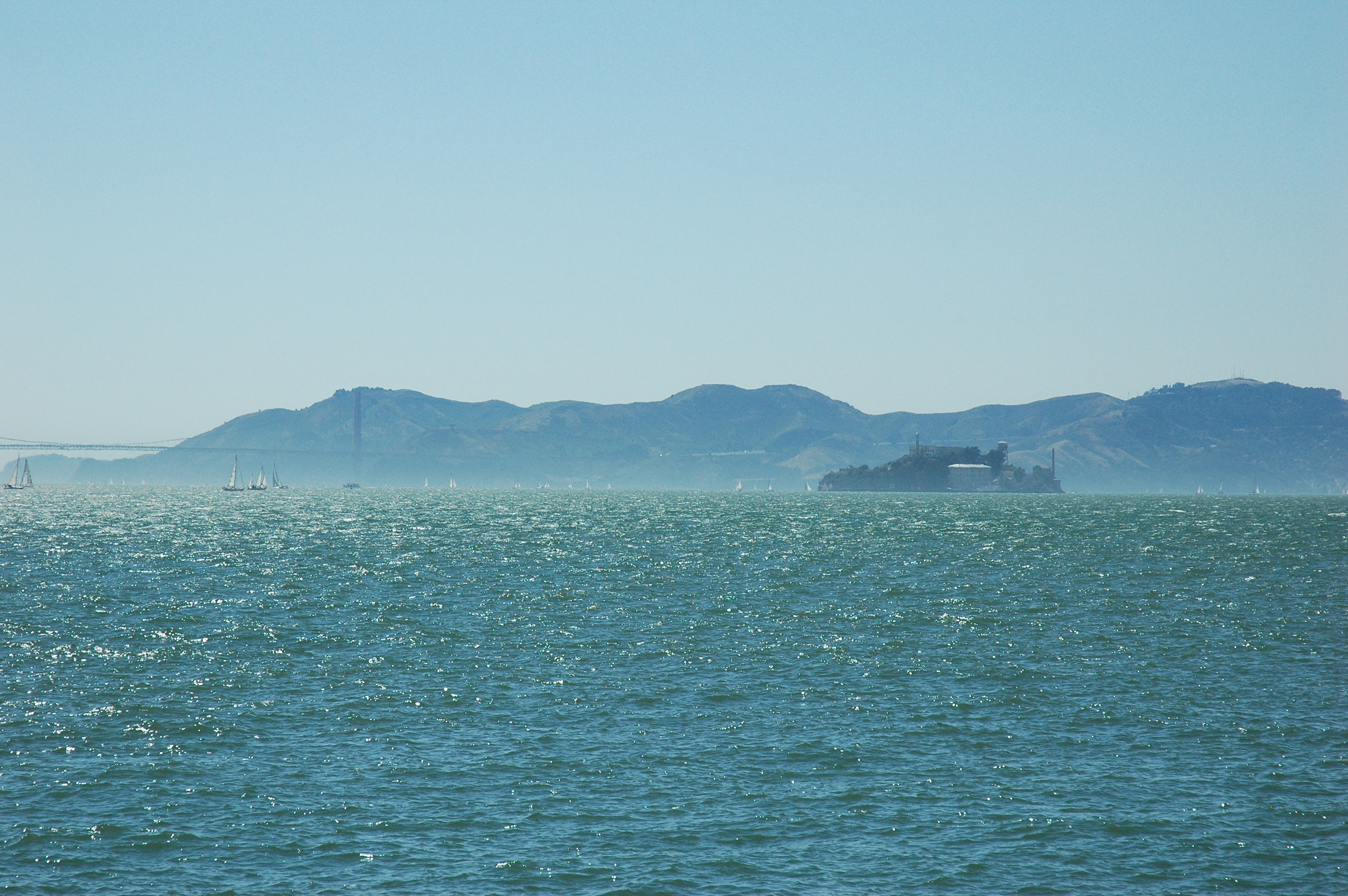 Saturday, we put a treasure tin together and headed out to do this, before Martina had to go back to London. We ran into trouble just getting to the island... there was a traffic jam on the Bay Bridge and it turned out that someone had run into the sand barrier on the off-ramp going for the island, and we couldn't even take it. We ended up going all the way over the bridge, and pulled a quasi-legal u-turn as soon as we could, before it would involve a toll on the way back. Back up and over and we were in.