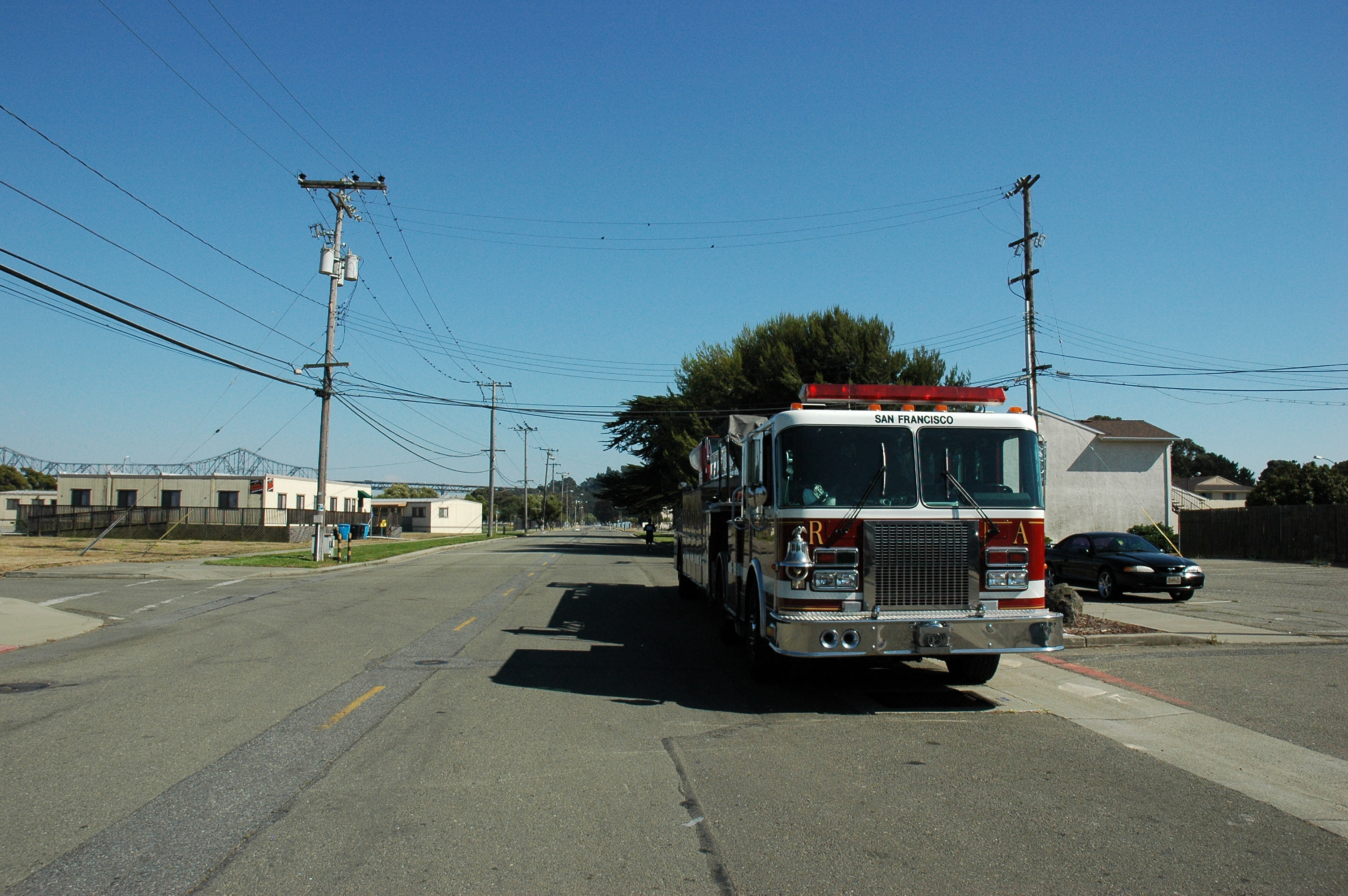 Even the residential area suffered from decay. Rows of inhabited townhouses stood next to and between other rows that were fenced off, marked with "hazardous material" warnings, and boarded up. We walked down an alley between fenced-off back-yards, pushed through a hole in the outer fence, and ended up on Perimeter Road at the opposite corner, a few feet from the water. We circled clockwise around the island's outer edge, came up on some windsurfers, returned to the industrial sector along Avenue M, saw the bus going the other way. Returning to Martina's car, we headed back to the peninsula, transitioning to real, present people once again.