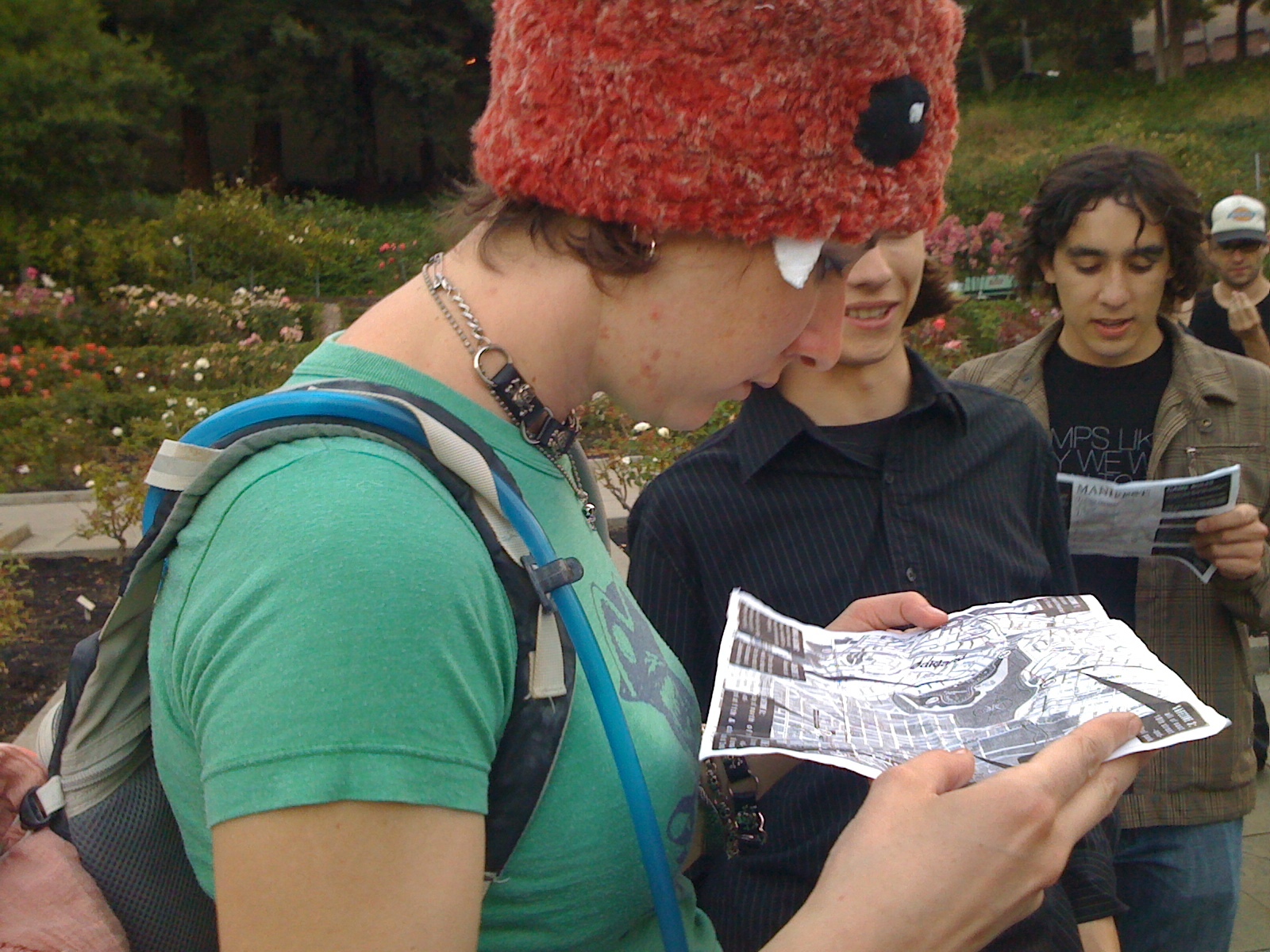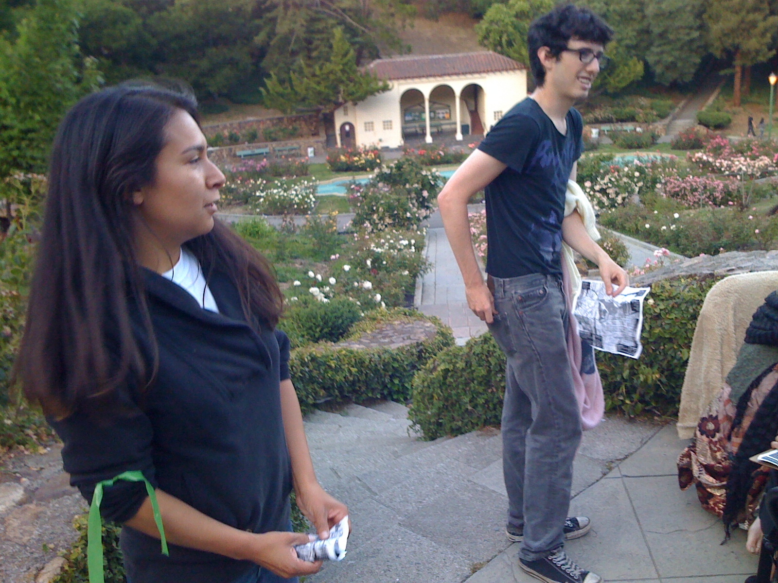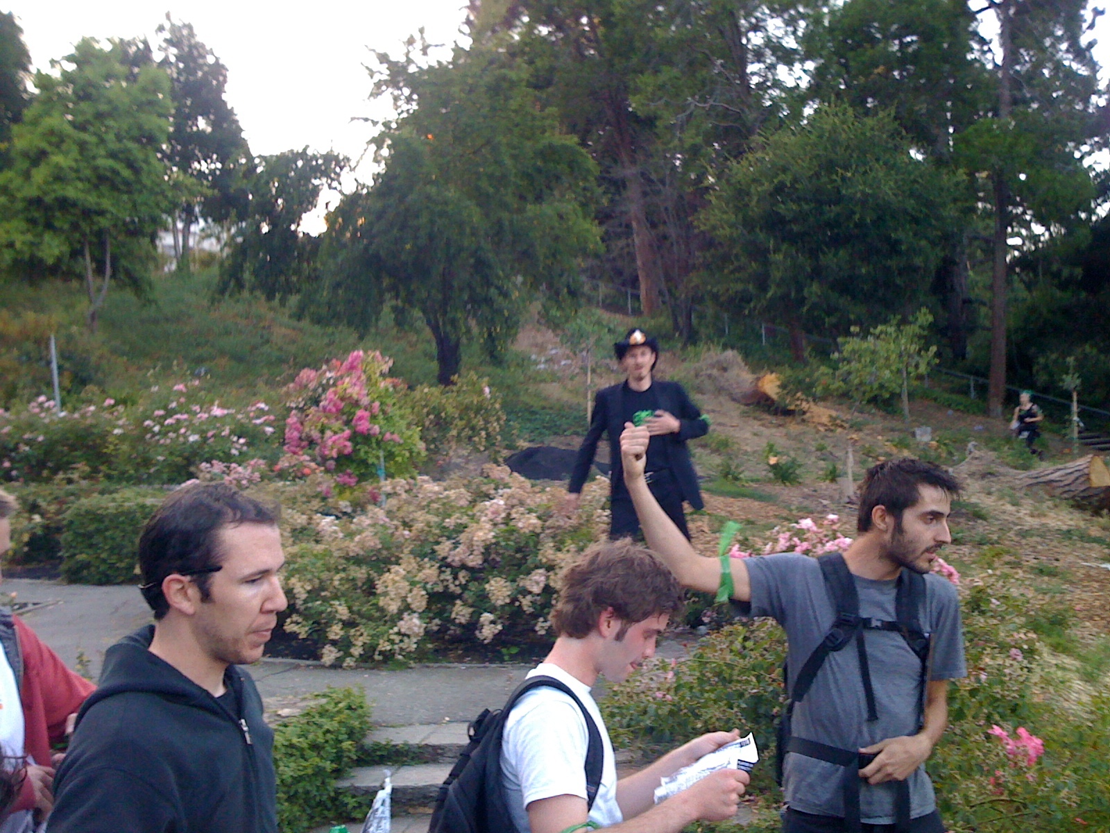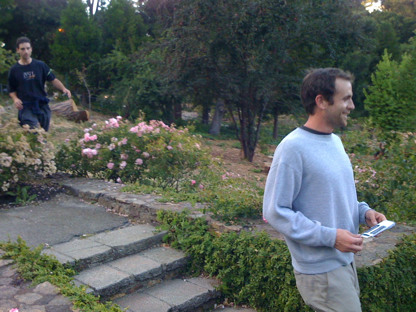 Just as the race was beginning, and before anyone made it to our checkpoint, we met a nice couple at the garden with their son. While their son was playing, they asked us what we were up to and seemed really into it, and the dad said he'd check out the site. Always share SF0 with interested parties! Oh man, Bex, sweet ringtone.
