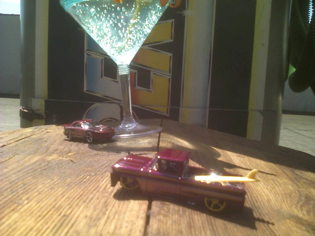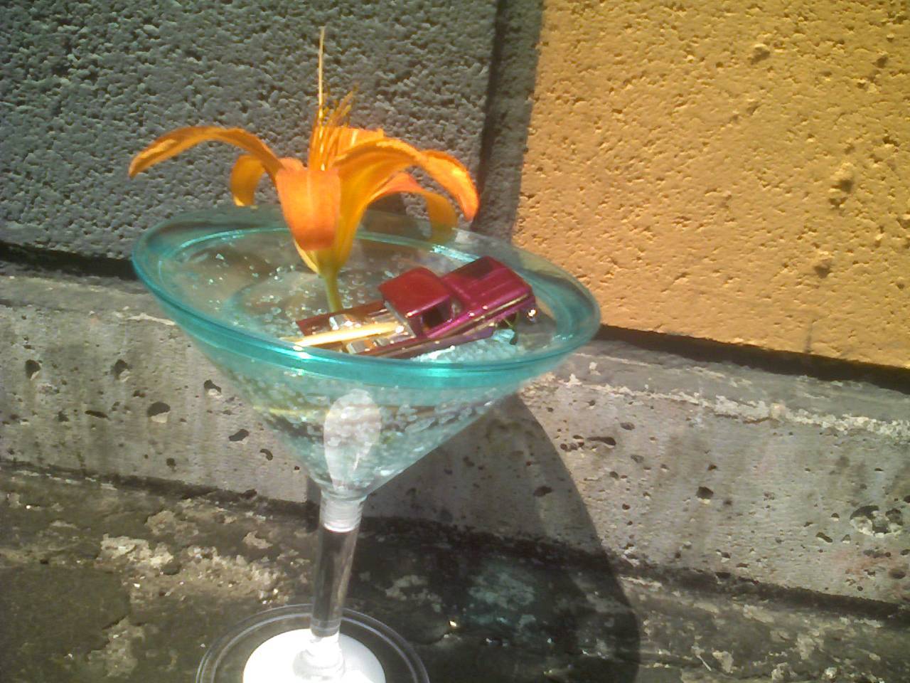 Duly noted. The content of the plastic martini "glass" was H2O. Most definitely a simulation of the more paradise-oriented CH3CH2OH. Ta da! -Jt