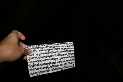 Then, wearing totally inappropriate shoes (which is kind of a trademark of mine, now that I think about it), I climbed up into my really fucking scary (RFS) attic all by myself to install the secret message in a secretive place.