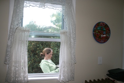 How I looked through Carolin's kitchen window. What am I carrying? Why do I look pregnant?